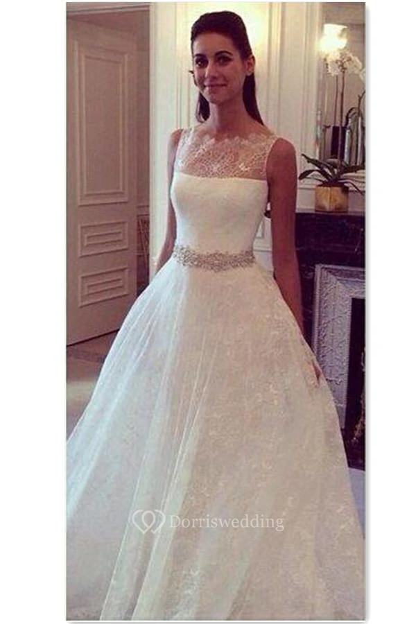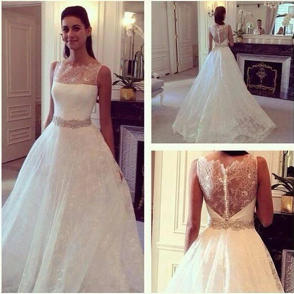 Hot Style Lace Elegant Princess Wedding Dress With Zipper Back