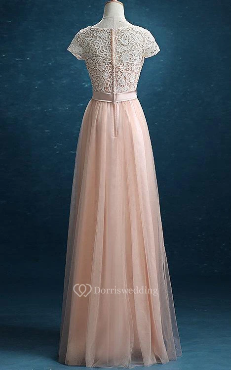 New Prom Lace Tulle Long Prom Tulle Formal Blush Tulle Party Floor Length Dress