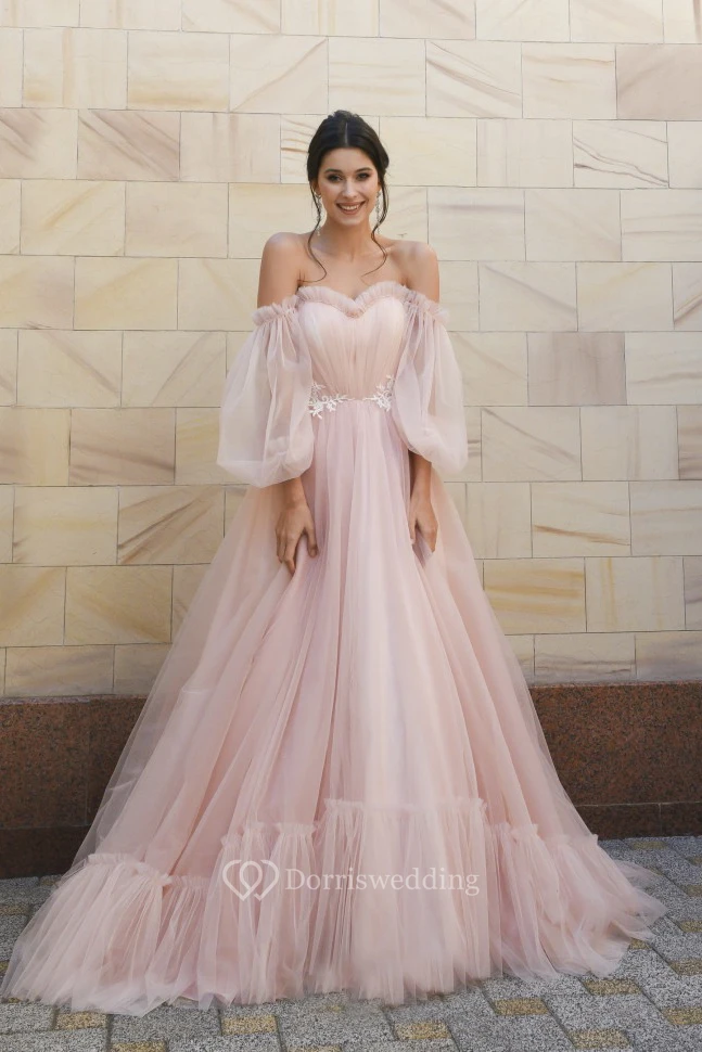 3/4 Poet Sleeves Charming Tulle Sweetheart Off-shoulder Princess Wedding Dress