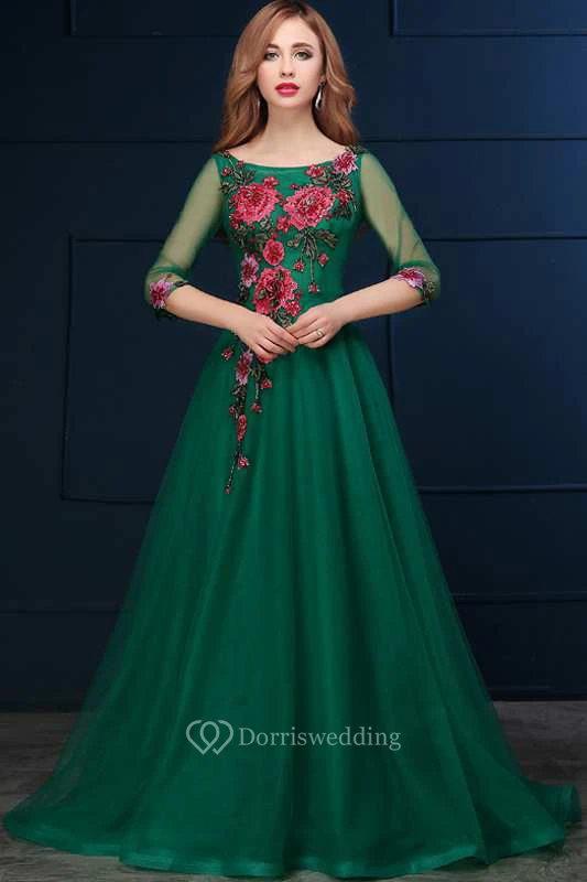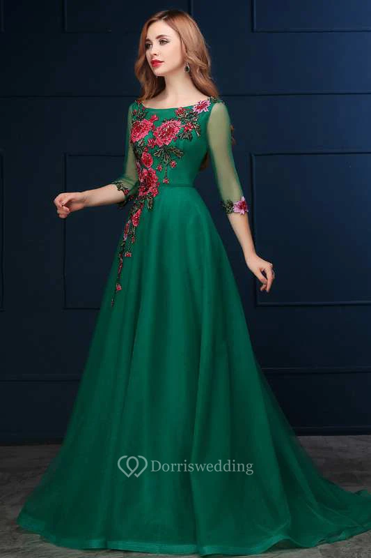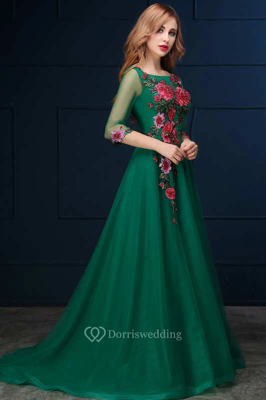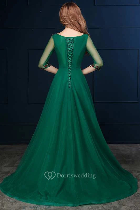 3-4 Illusion Sleeve Bateau Neck A-line Organza Dress