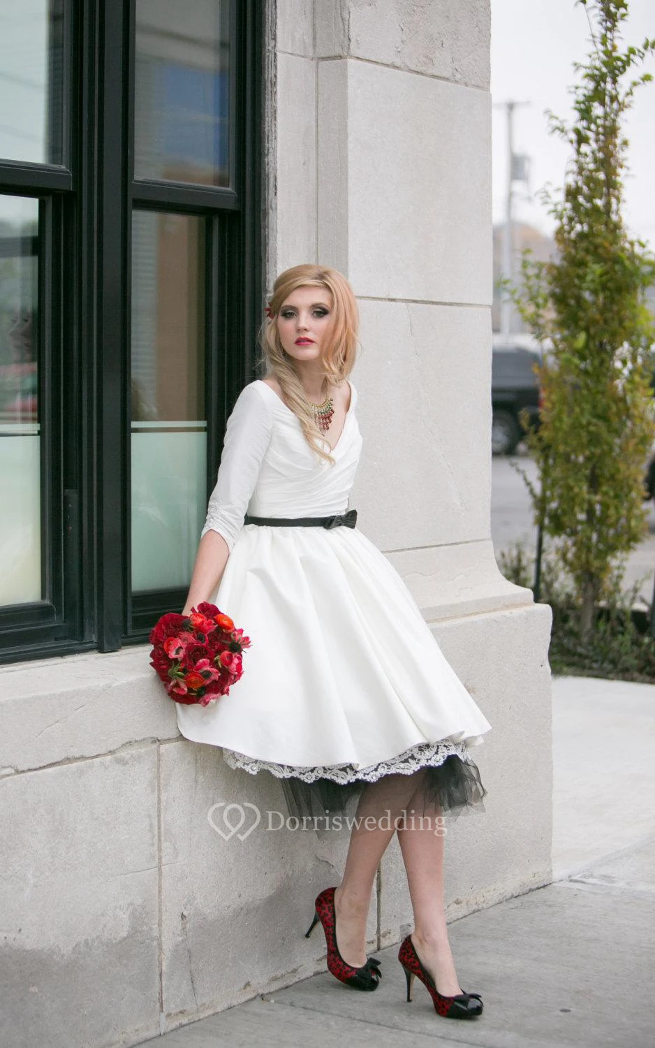 • Hemline/Train: Tea-length