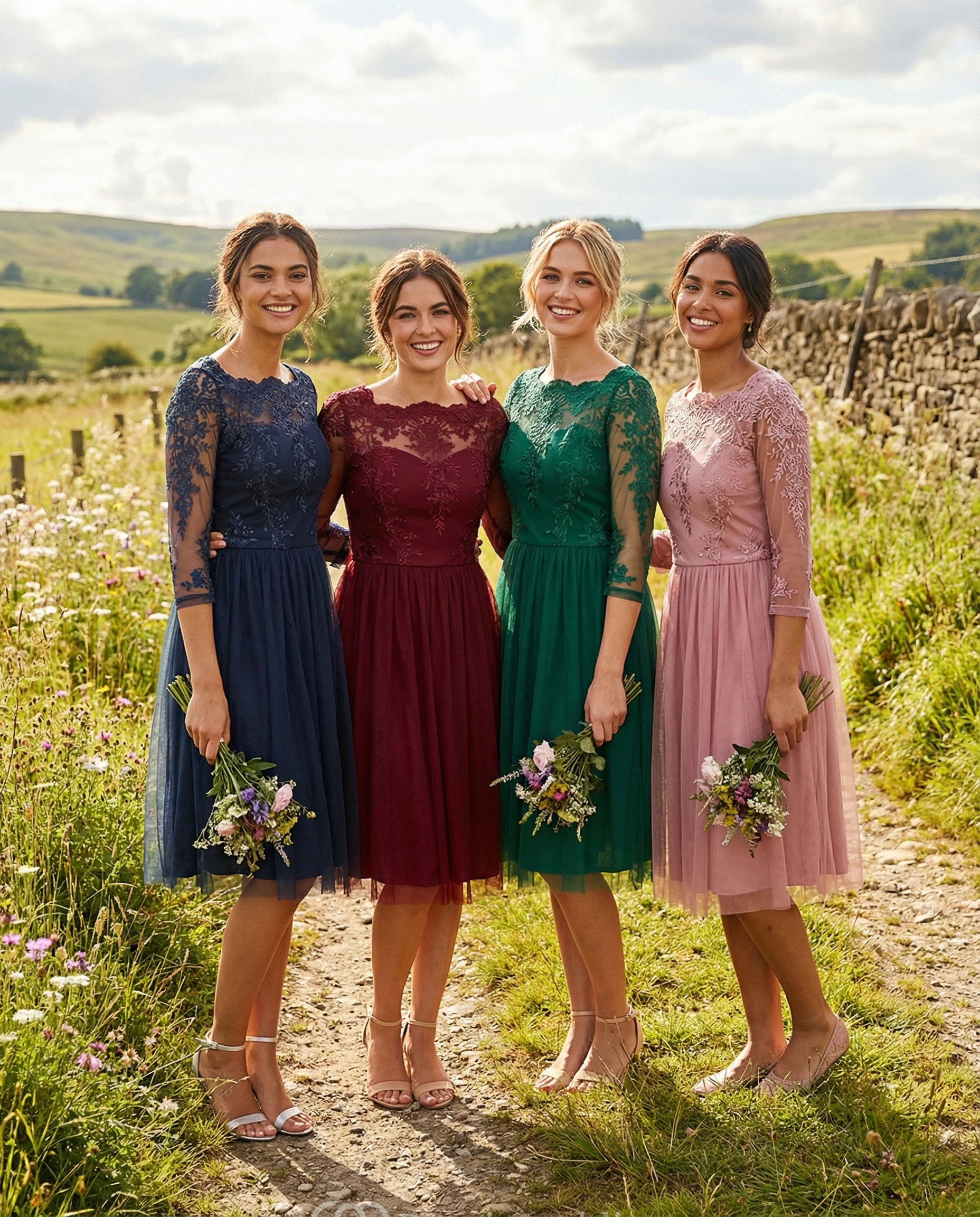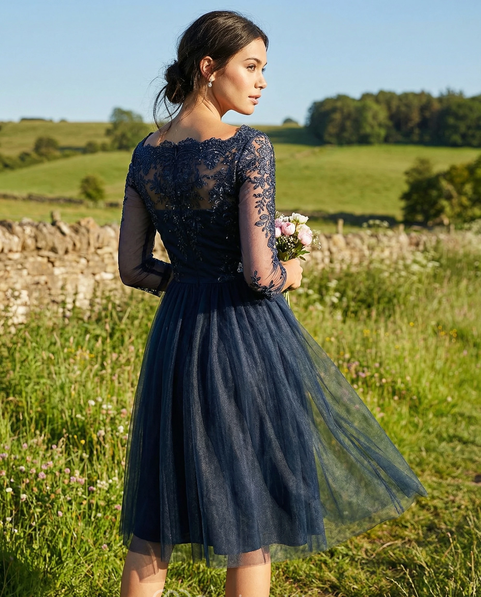 3/4 Sleeve Bateau Neck Tulle Bridesmaid Dress