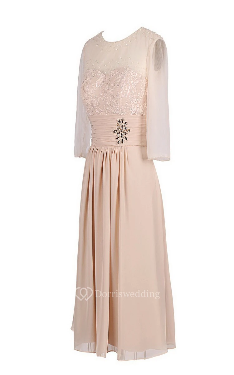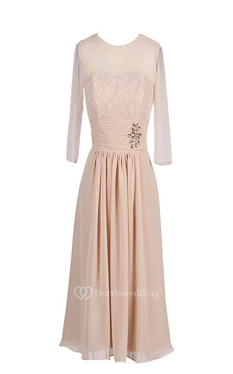 3-4 Sleeve Chiffon Dress With Embroidered Bodice