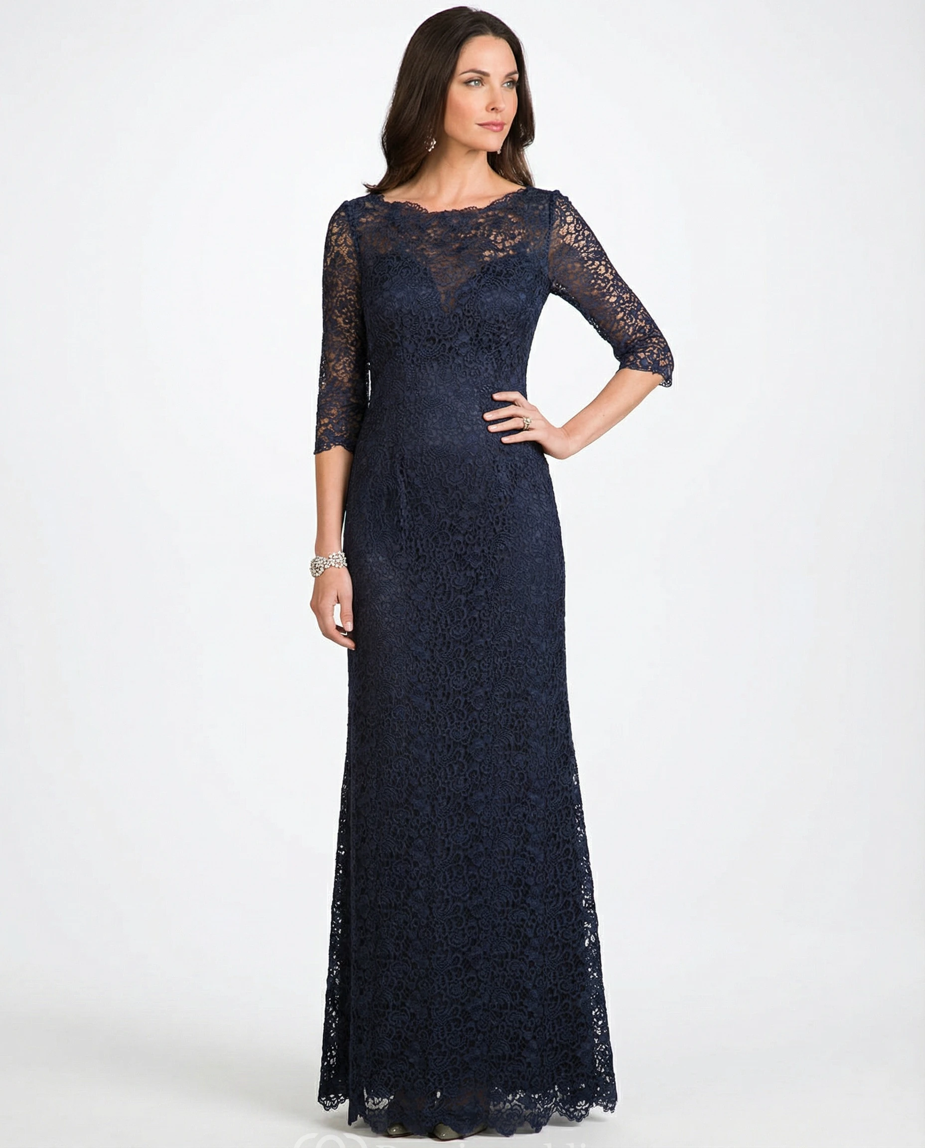 3/4 Sleeve Illusion Lace Mother of the Bride