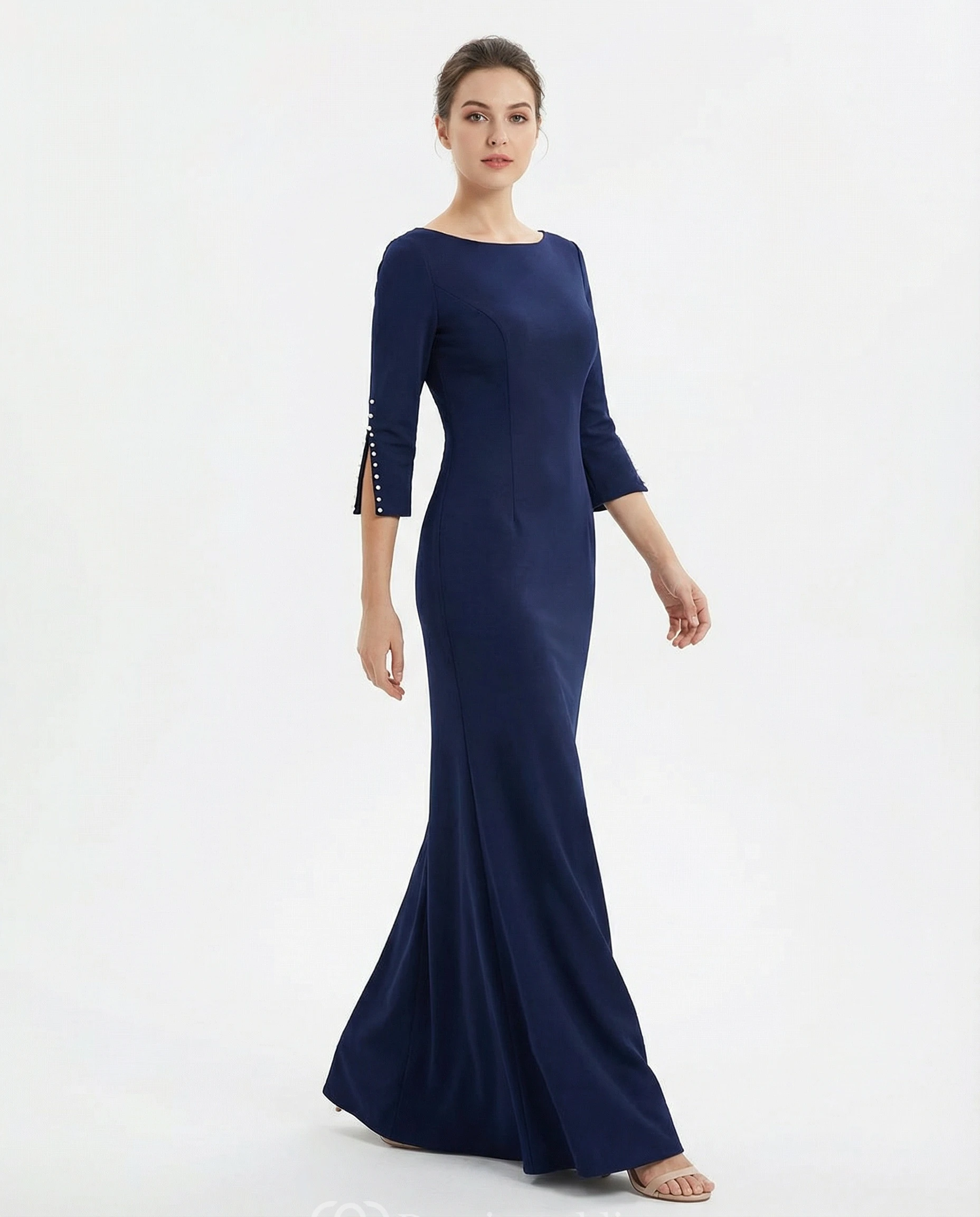 3/4 Sleeve Spandex Mermaid Dress with Pearls