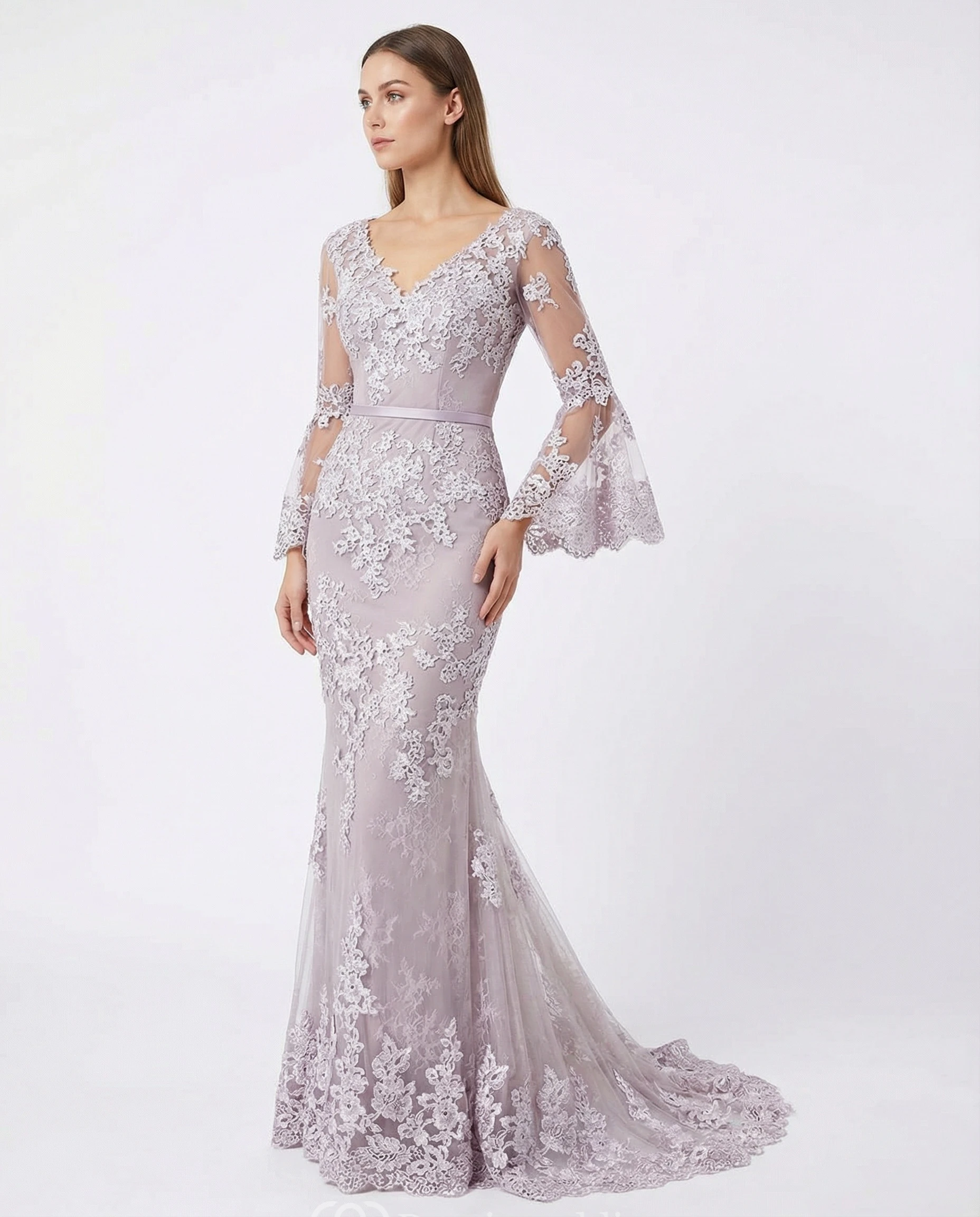 • Hemline/Train: Floor-length, Sweep/Brush Train