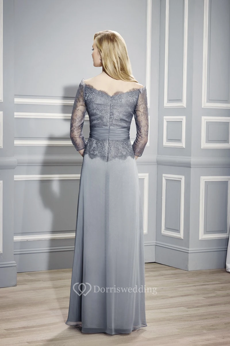 3-4 Sleeve V-Neck Appliqued Jersey Formal Dress With Draping