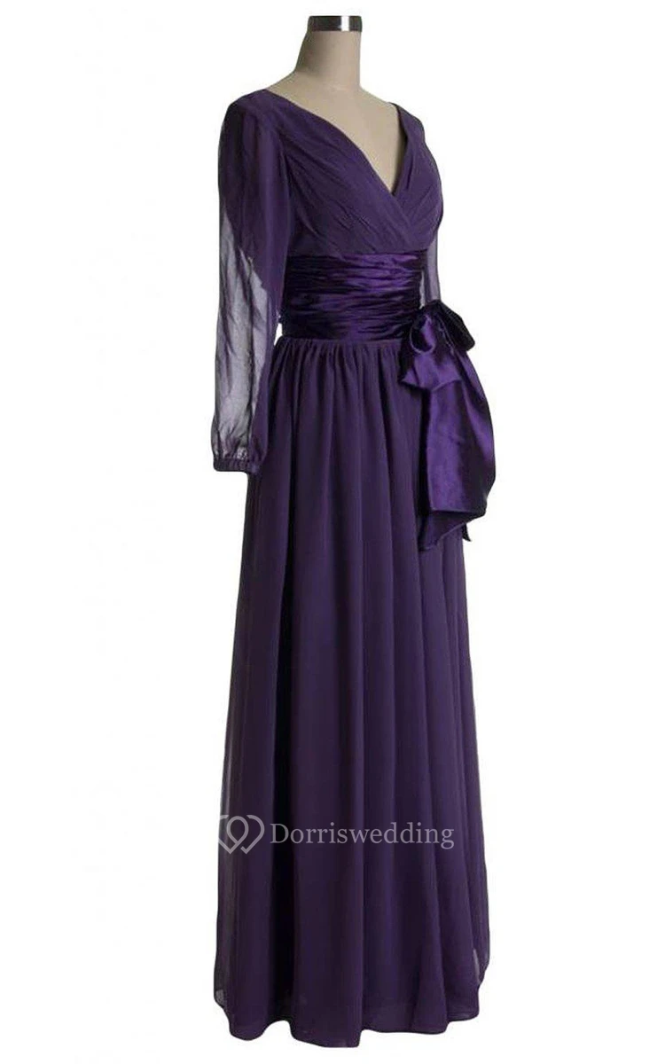 3-4 Sleeved A-line Dress With Bow and Illusion Style