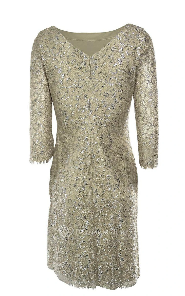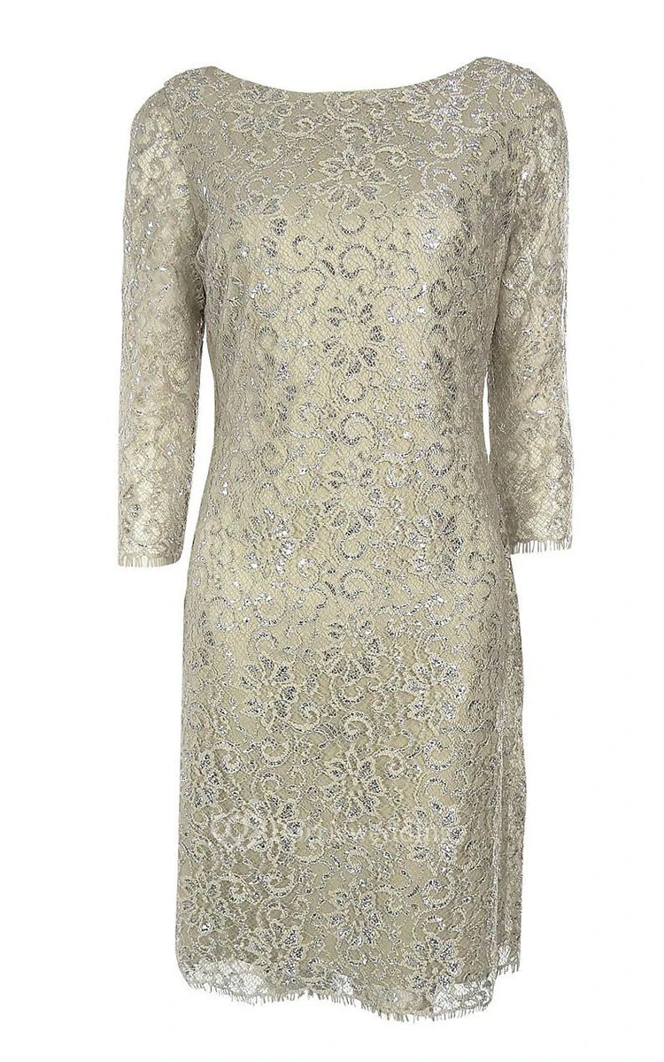 3-4 Sleeved Lace Sheath Dress With Bateau Neck