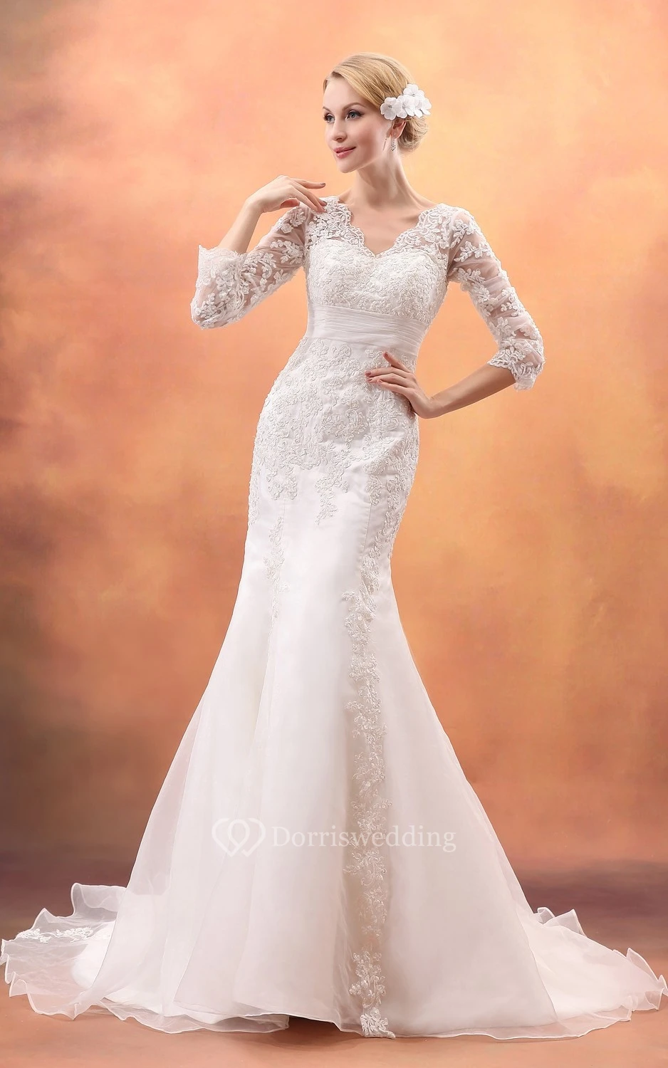 3-4 Sleeved Trumpet Gown With Lace Illusion Bodice