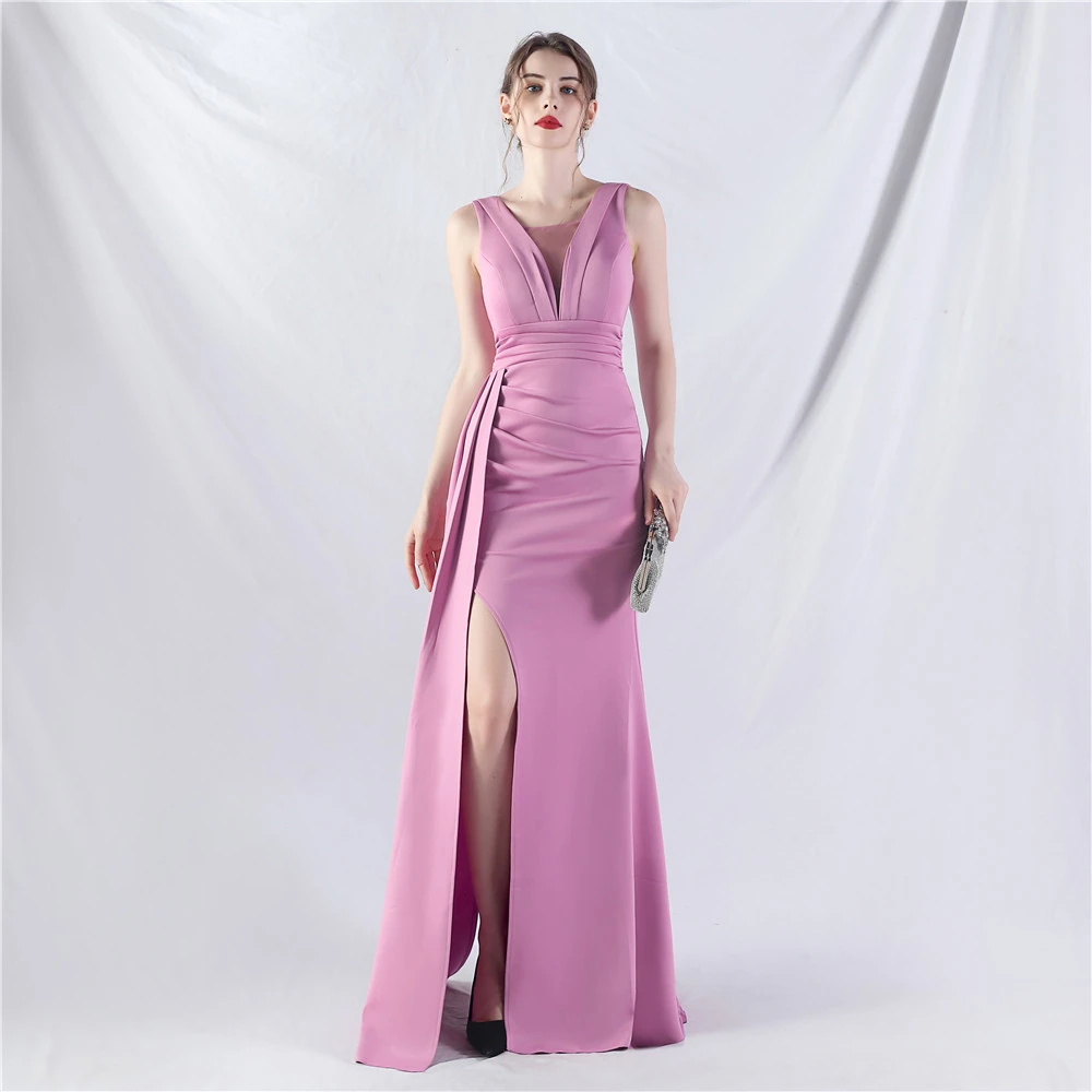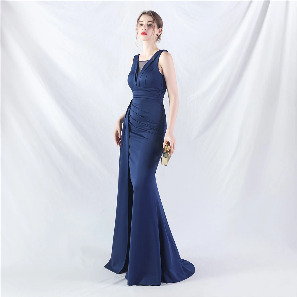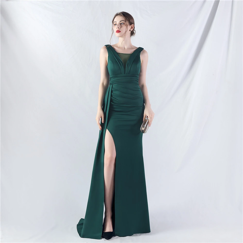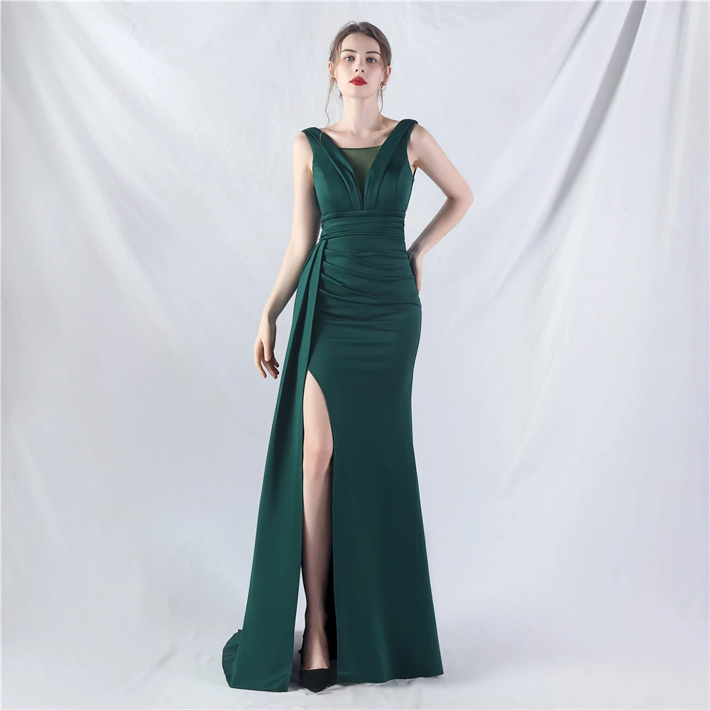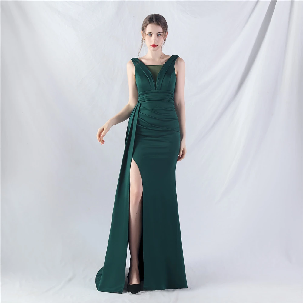 8 Colors Optional Pleated Craft Satin Evening Dress