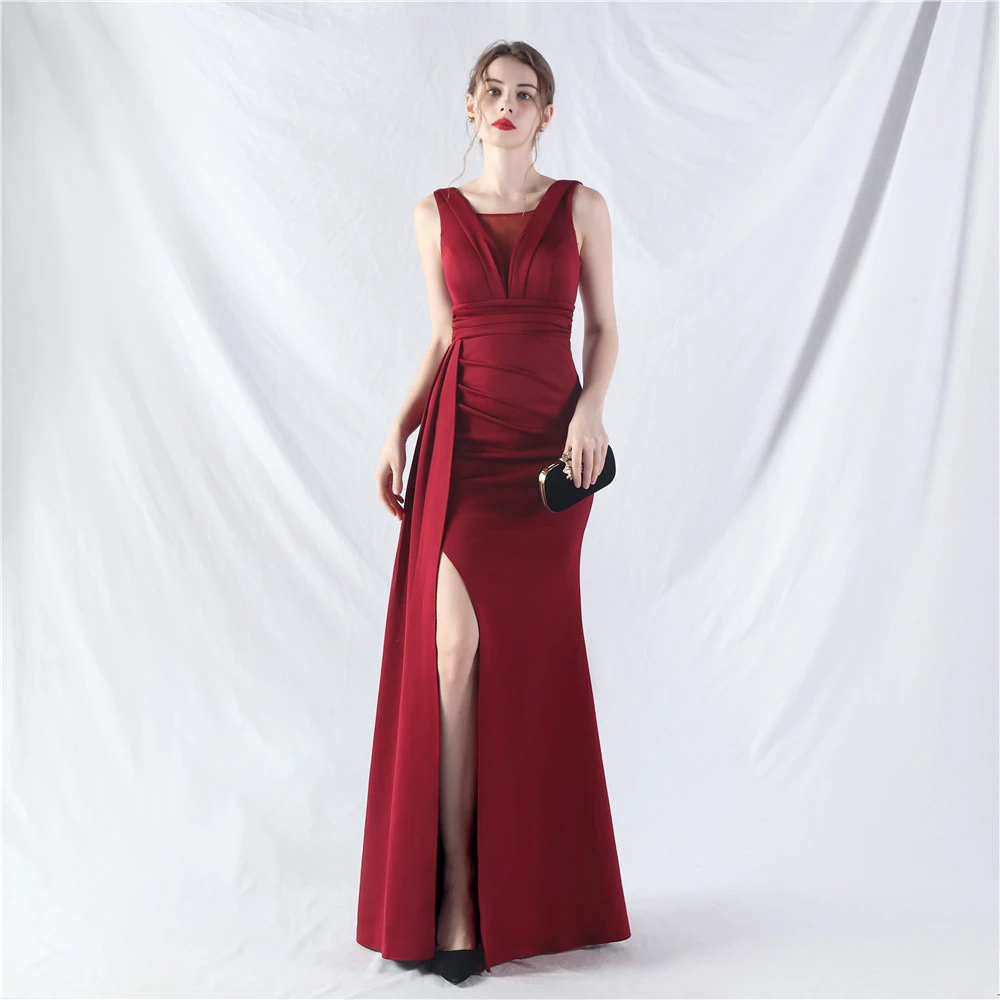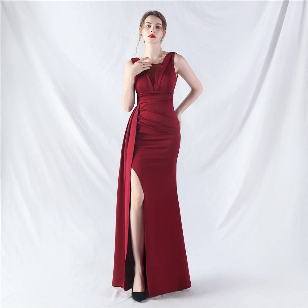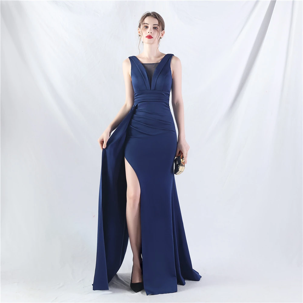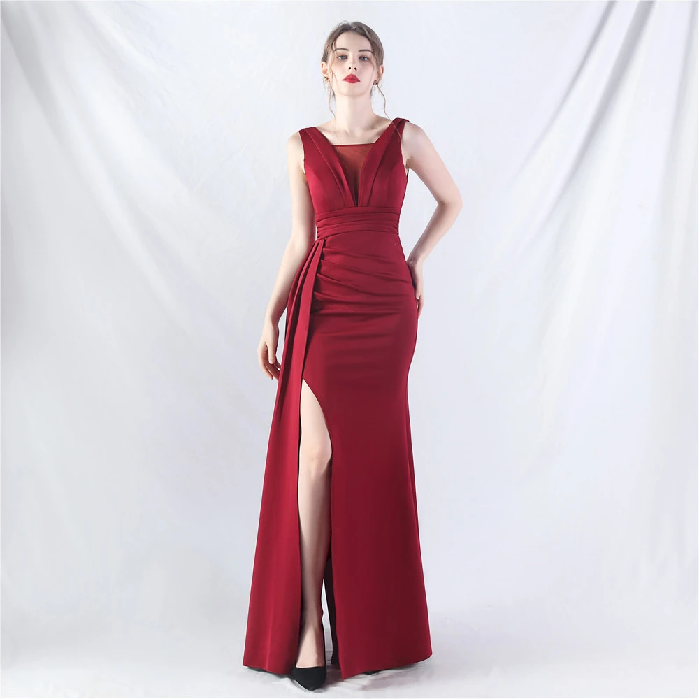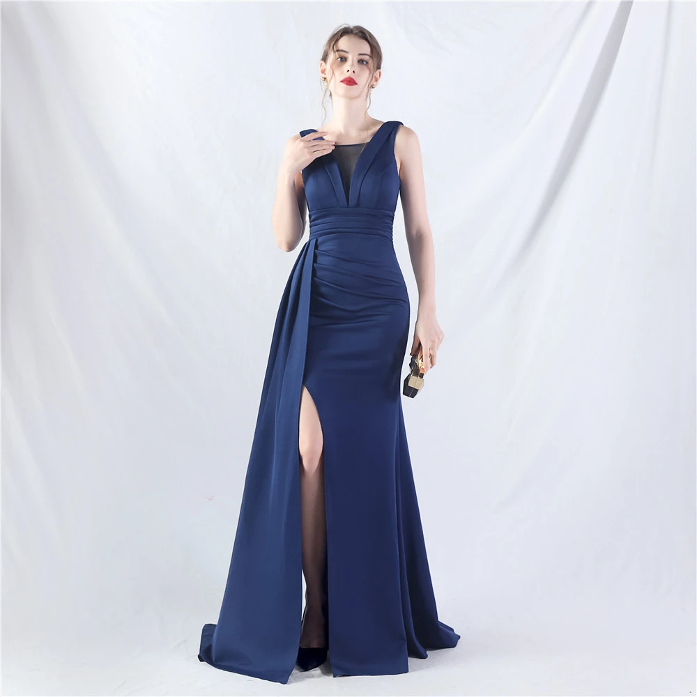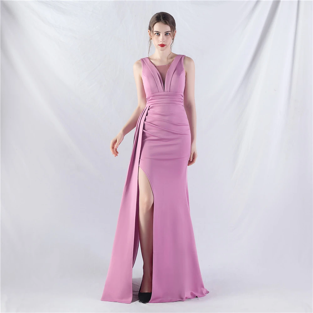 8 Colors Optional Pleated Craft Satin Evening Dress