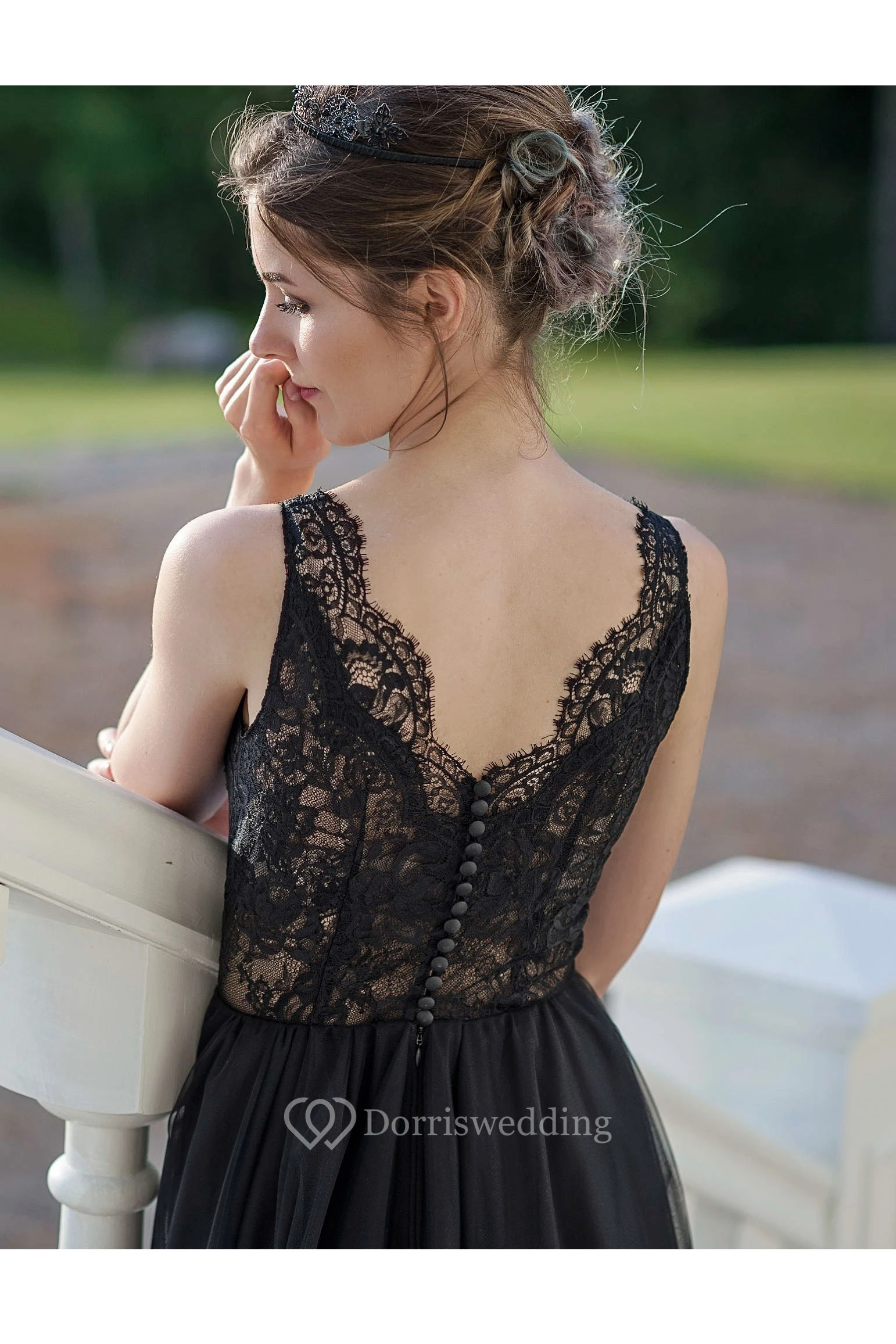 Dorris did such a great job with meeting the customization that I wanted! I did not order a standard size just to ensure the dress fits so well. And it did! My perfect black wedding dress!! It's just a bit heavier than I think.