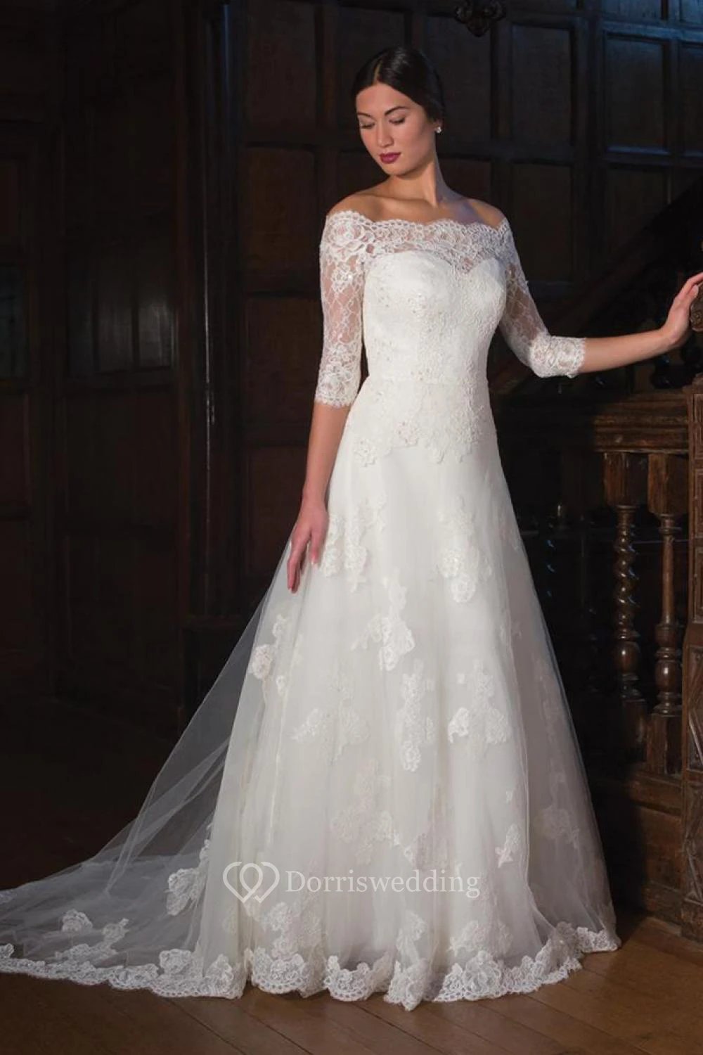 Very beautiful wedding dress, except the sleeves there are a little tight, other are very fit!!