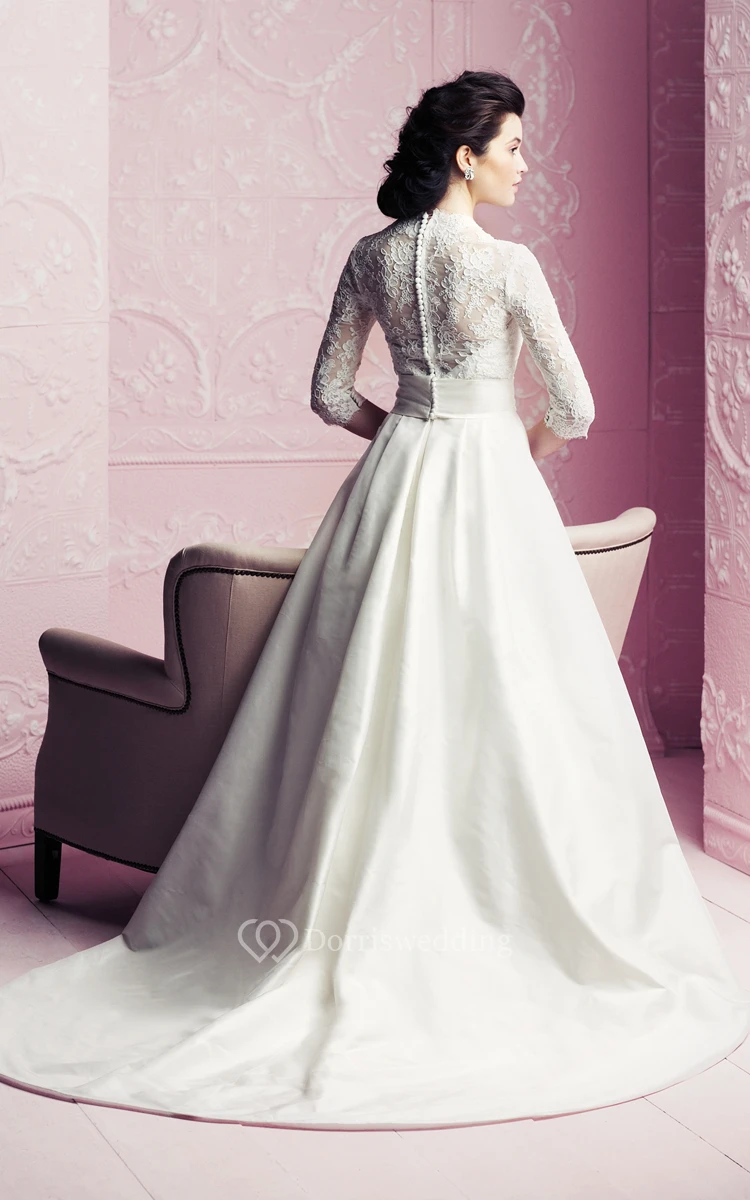 A-Line 3-4-Sleeved Elegant Vow Renewal Dress With Lace Bodice
