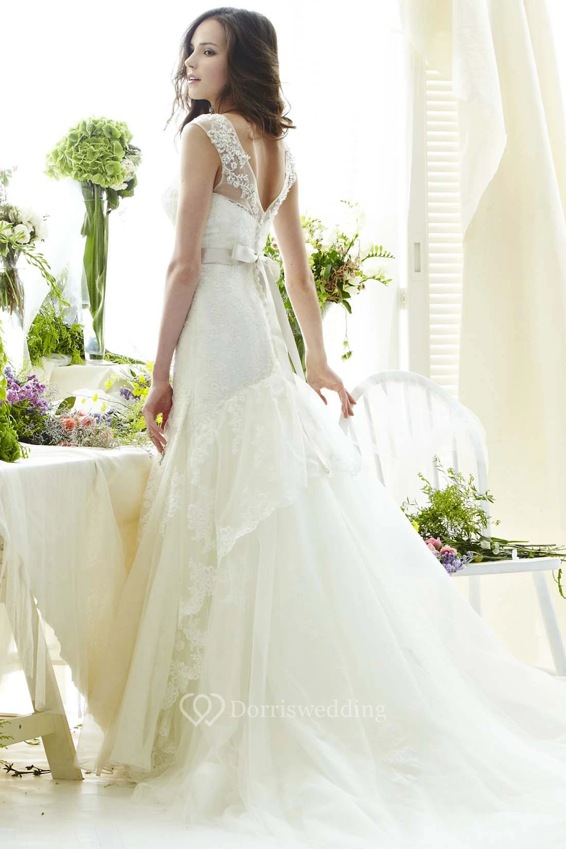 • Hemline/Train: Floor-length