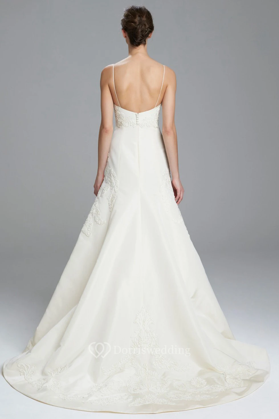 A-Line Appliqued Floor-Length Sleeveless Spaghetti Satin Wedding Dress