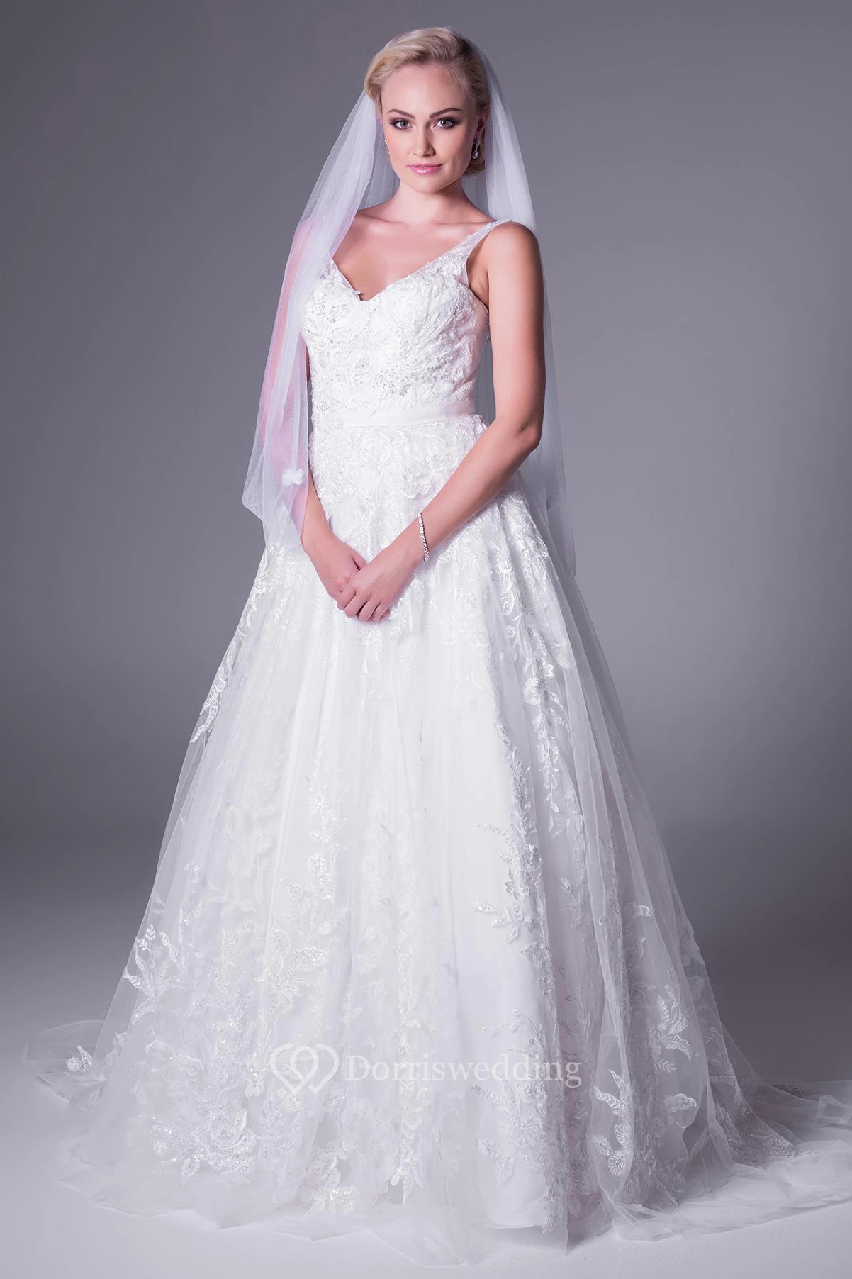 • Hemline/Train: Floor-length