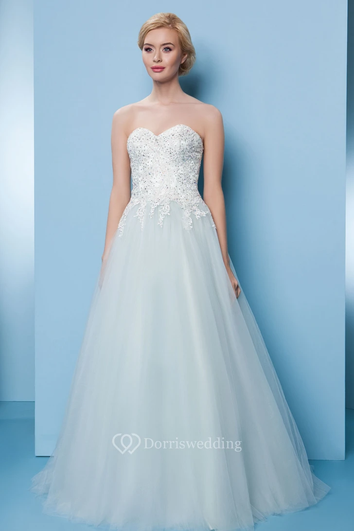 A-Line Appliqued Maxi Sweetheart Sleeveless Tulle Prom Dress