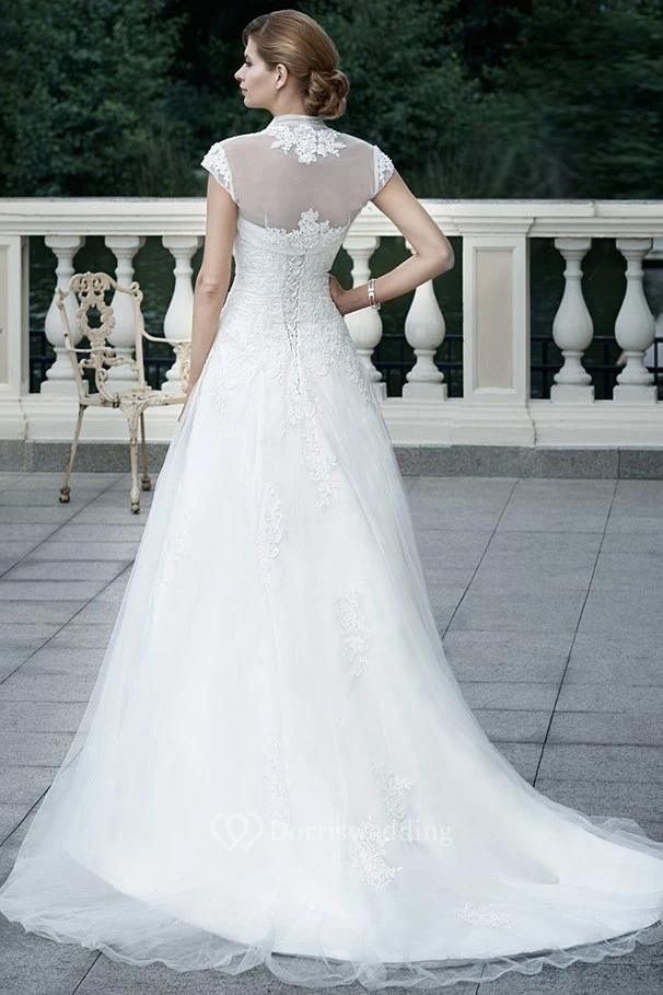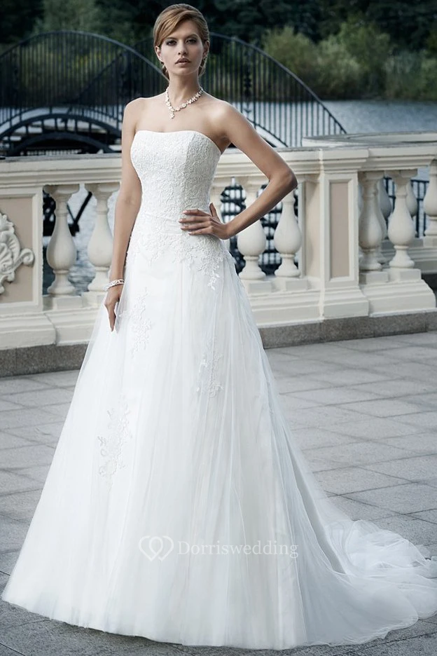 A-Line Appliqued Sleeveless Strapless Floor-Length Tulle Wedding Dress