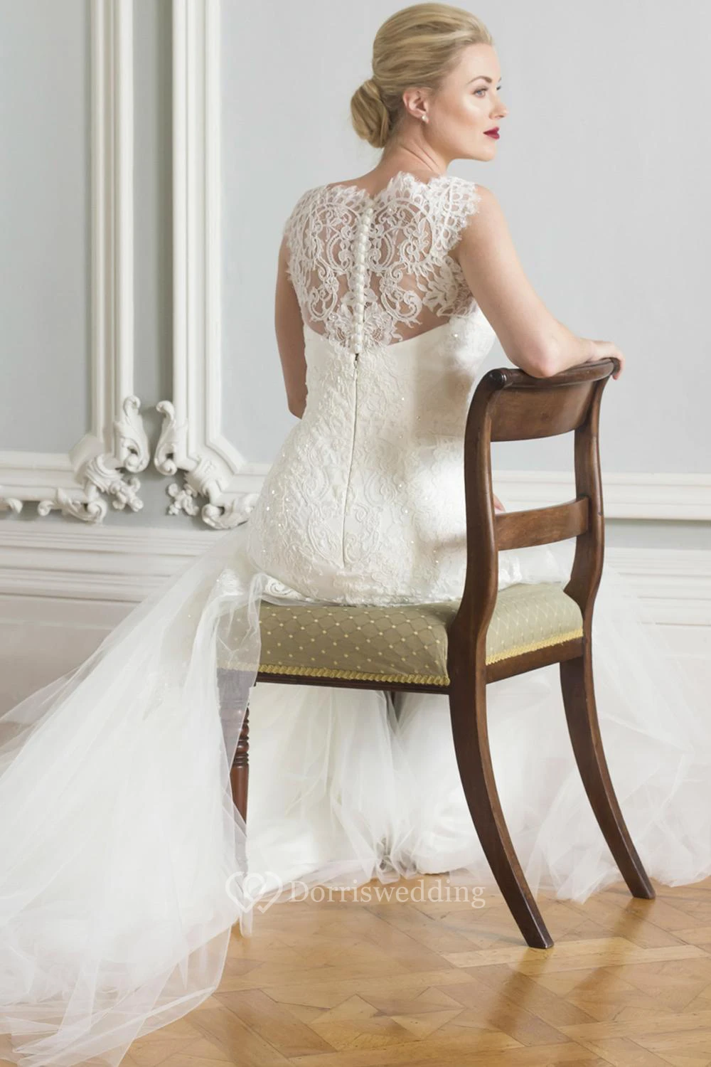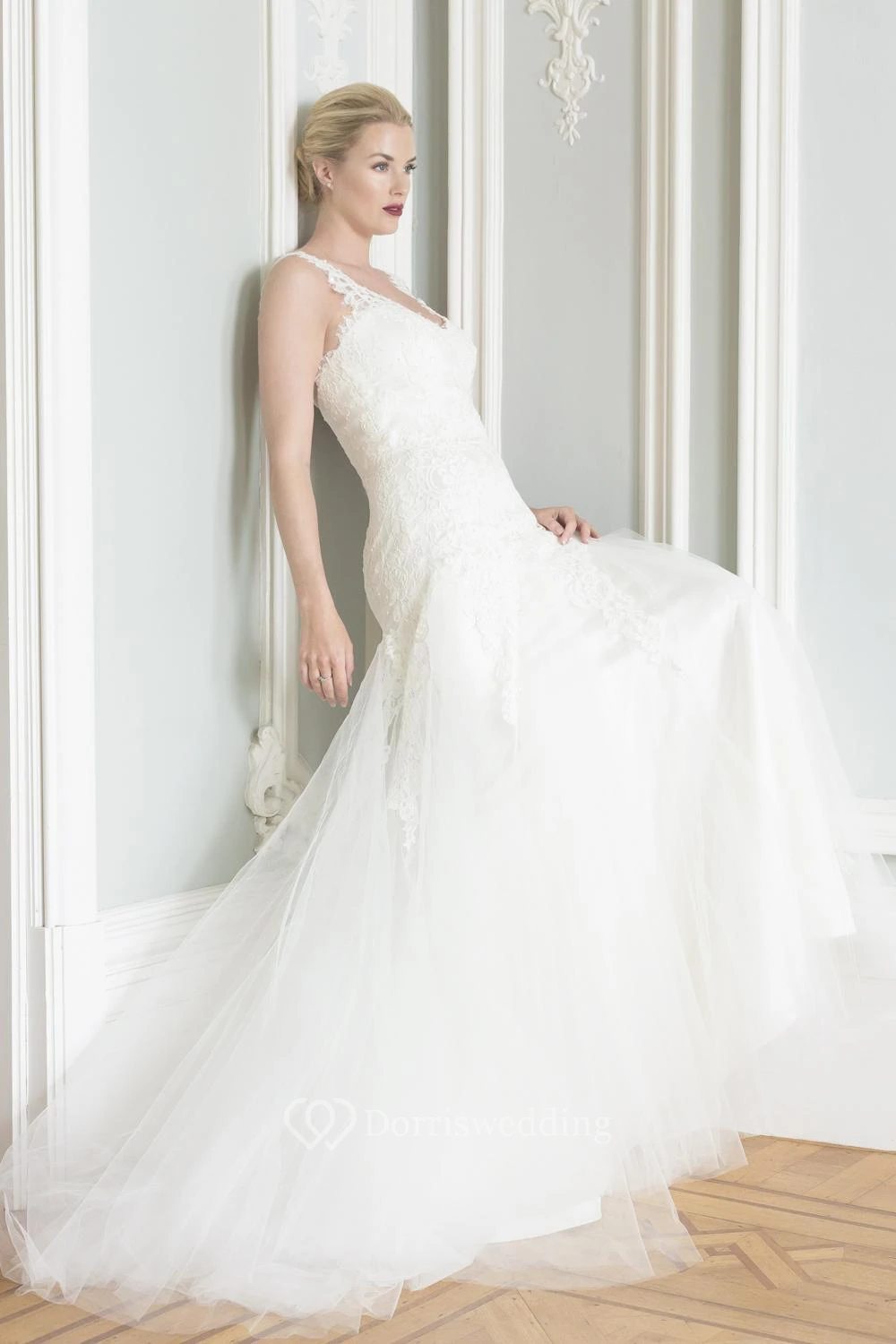 A-Line Appliqued Sleeveless V-Neck Floor-Length Tulle&Lace Wedding Dress