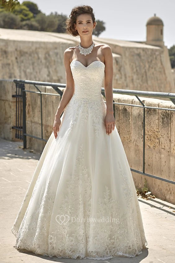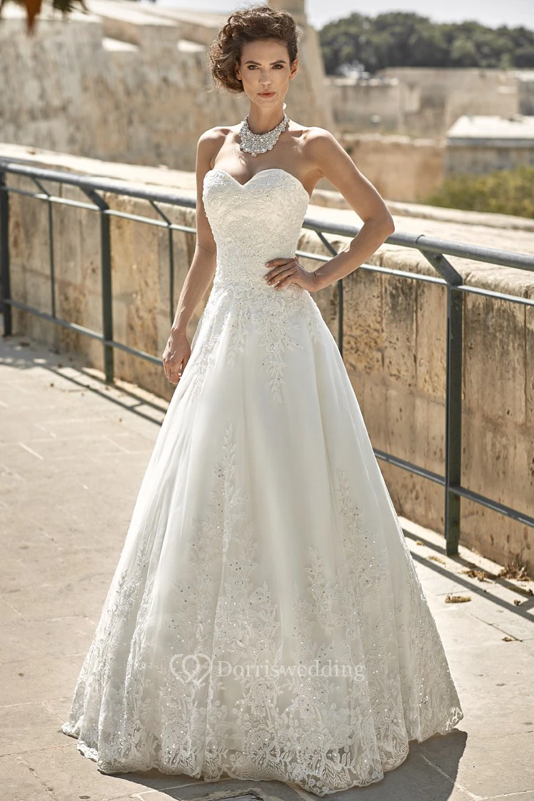 A-Line Appliqued Sweetheart Floor-Length Lace Wedding Dress With Beading