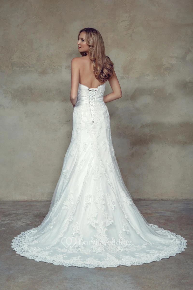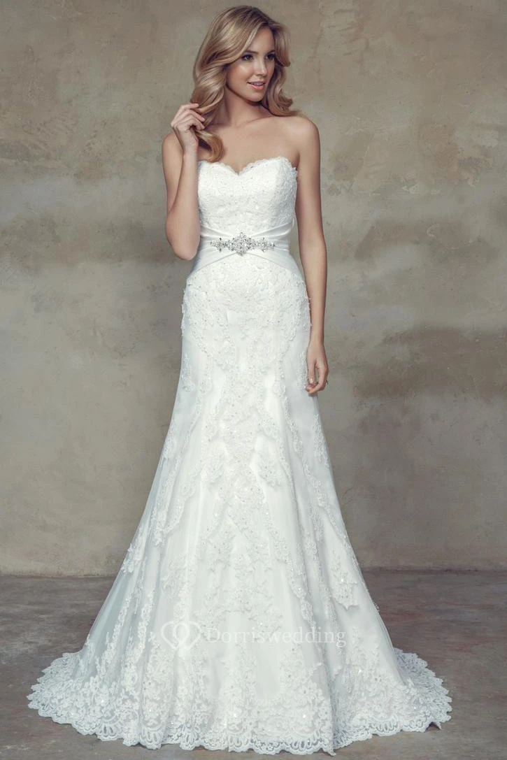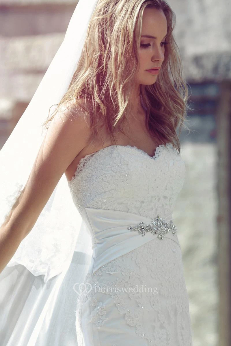 A-Line Appliqued Sweetheart Lace Wedding Dress With Waist Jewellery And Lace Up