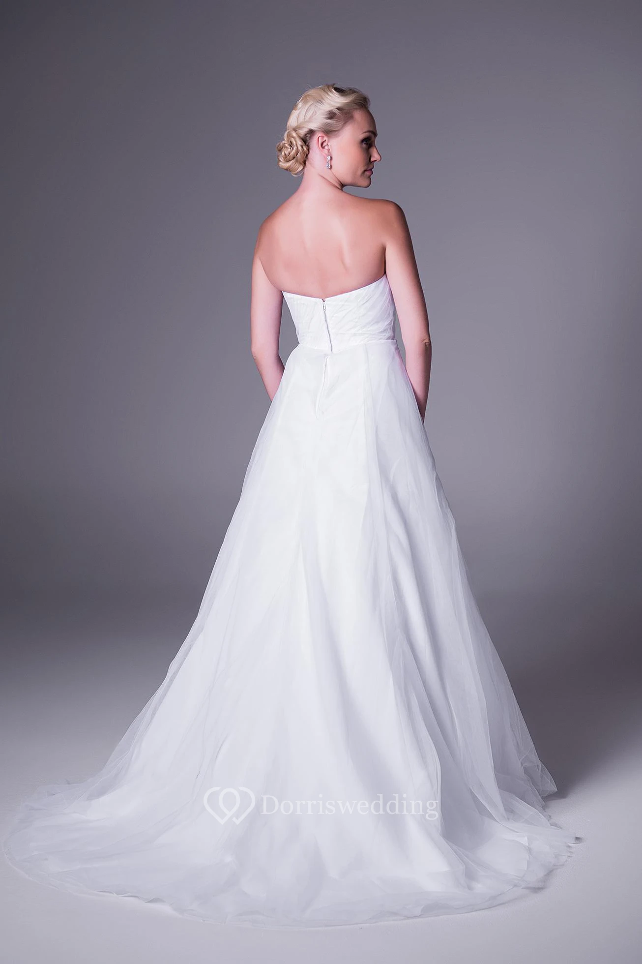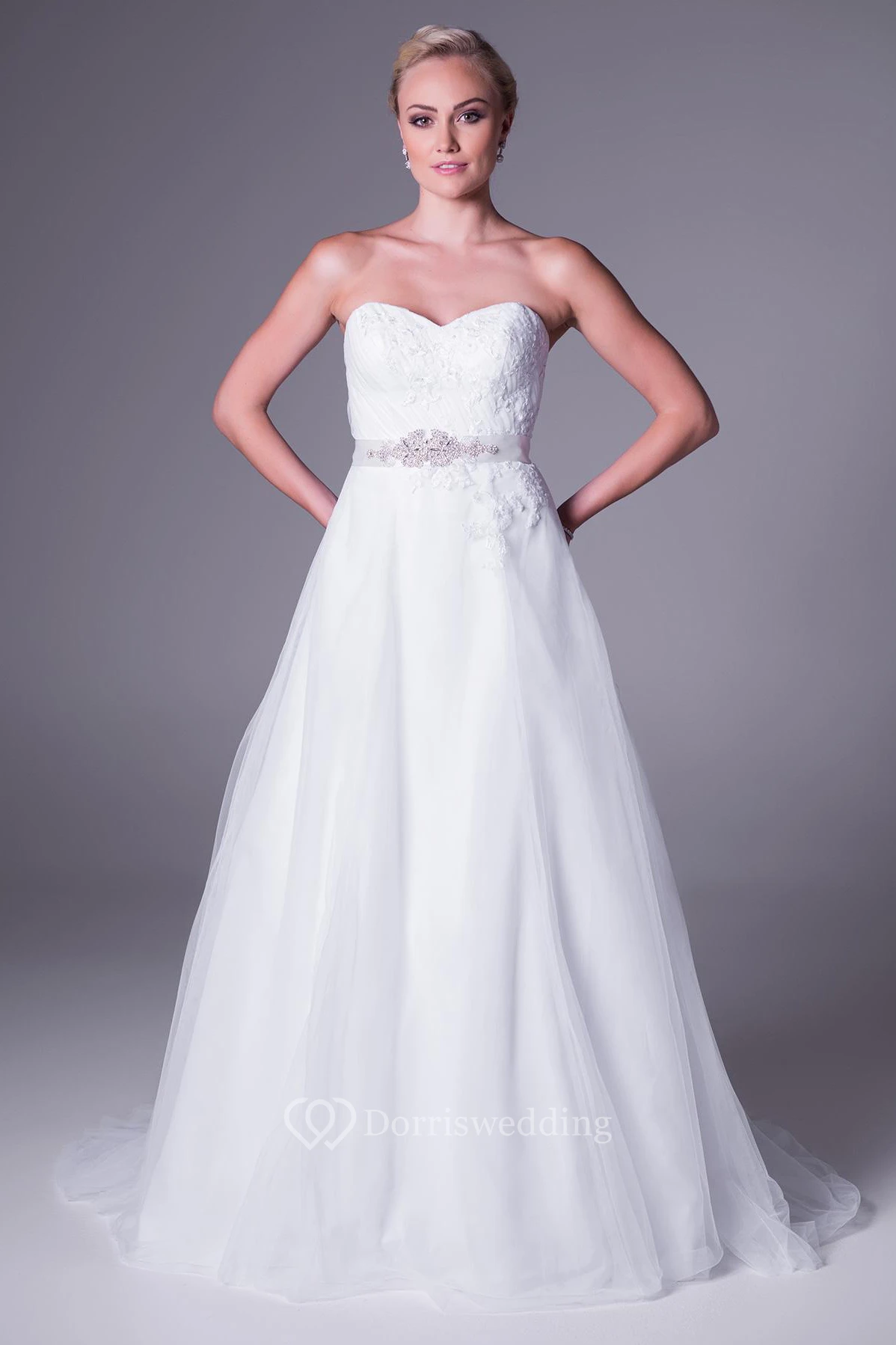 A-Line Appliqued Sweetheart Tulle Wedding Dress With Ruching And Waist Jewellery