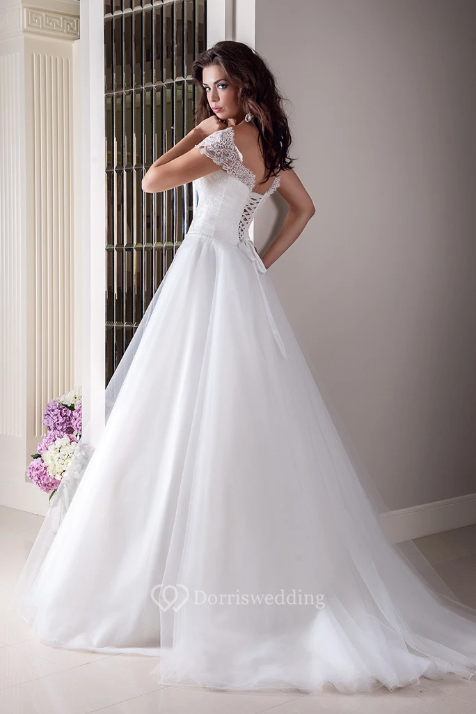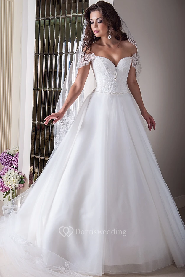 A-Line Appliqued Sweetheart Tulle Wedding Dress With Waist Jewellery And Bow