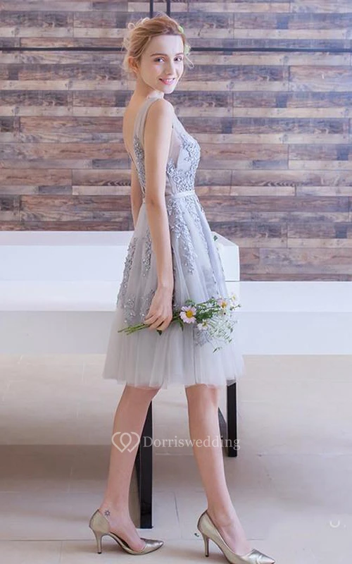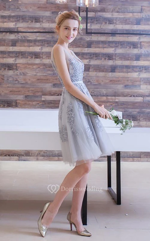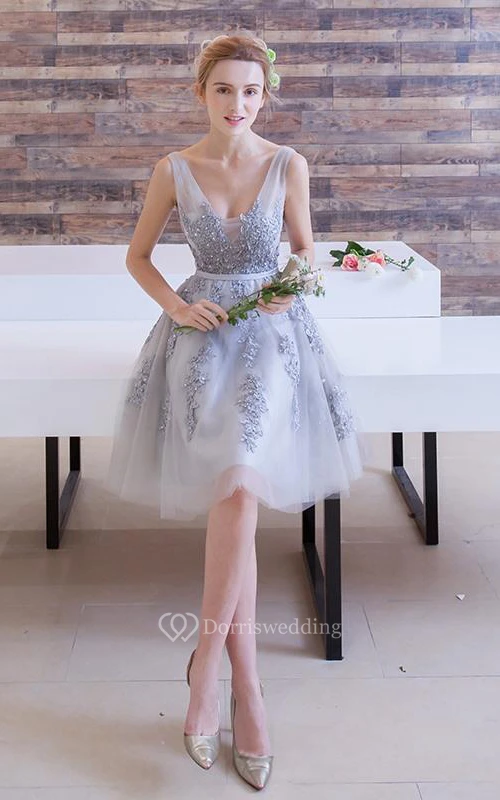 A-Line Appliques Beading Short Prom Dress