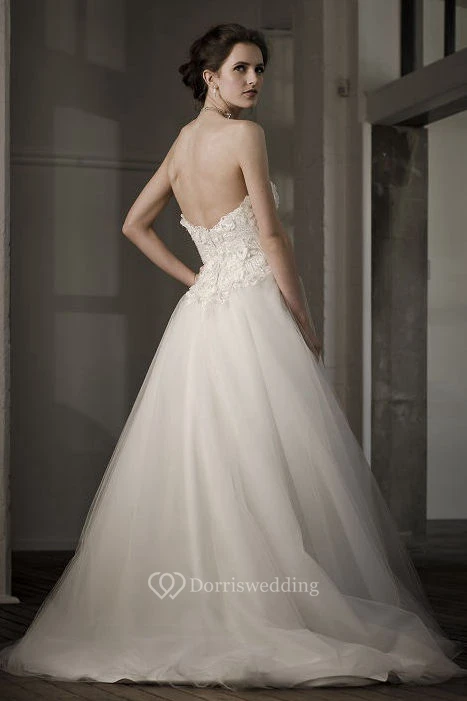 A-Line Ball-Gown Floor-Length Sweetheart Floral Sleeveless Tulle Wedding Dress With Backless Style And Appliques