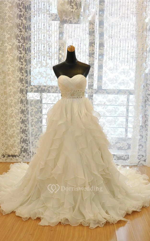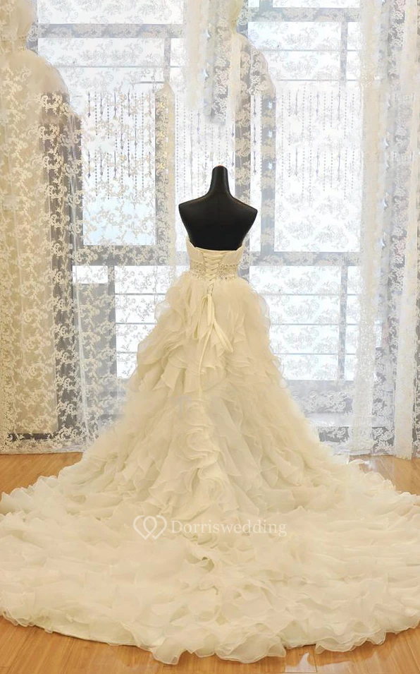 A-Line Ball Gown Mini Sweetheart Sleeveless Bell Beading Court Train Corset Back Lace Organza Dress