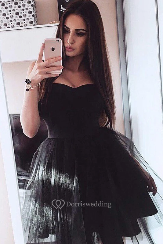 A-line Ball Gown Sleeveless Satin Tulle Sweetheart Short Mini Homecoming Dress