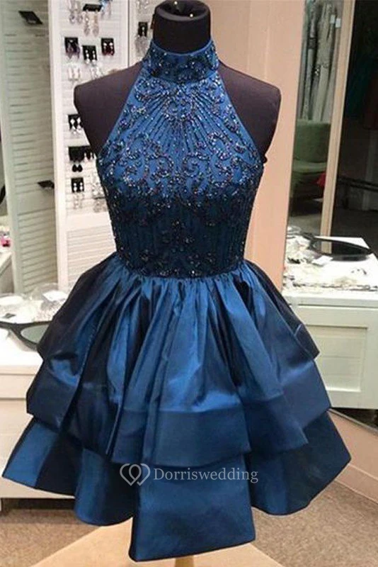 A-line Ball Gown Sleeveless Taffeta High Neck Short Mini Homecoming Dress