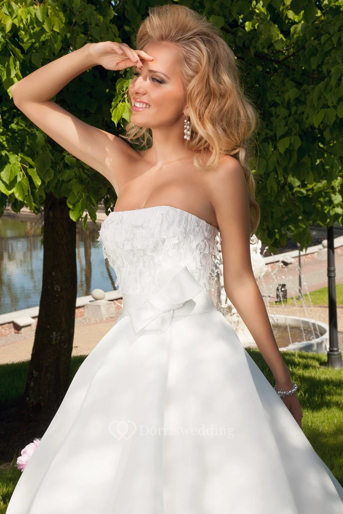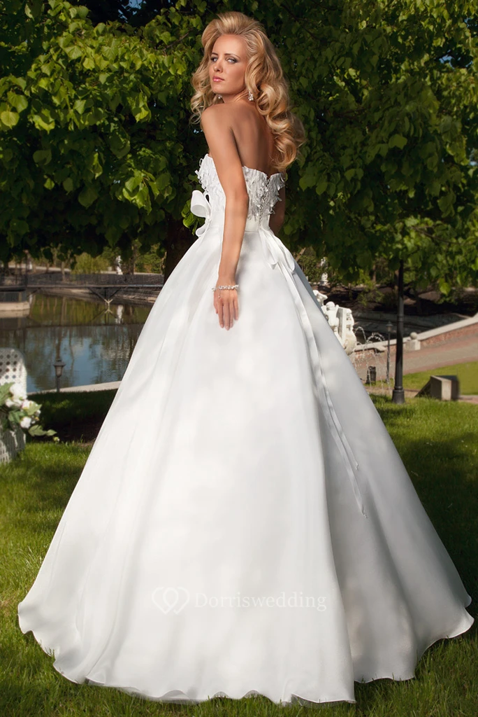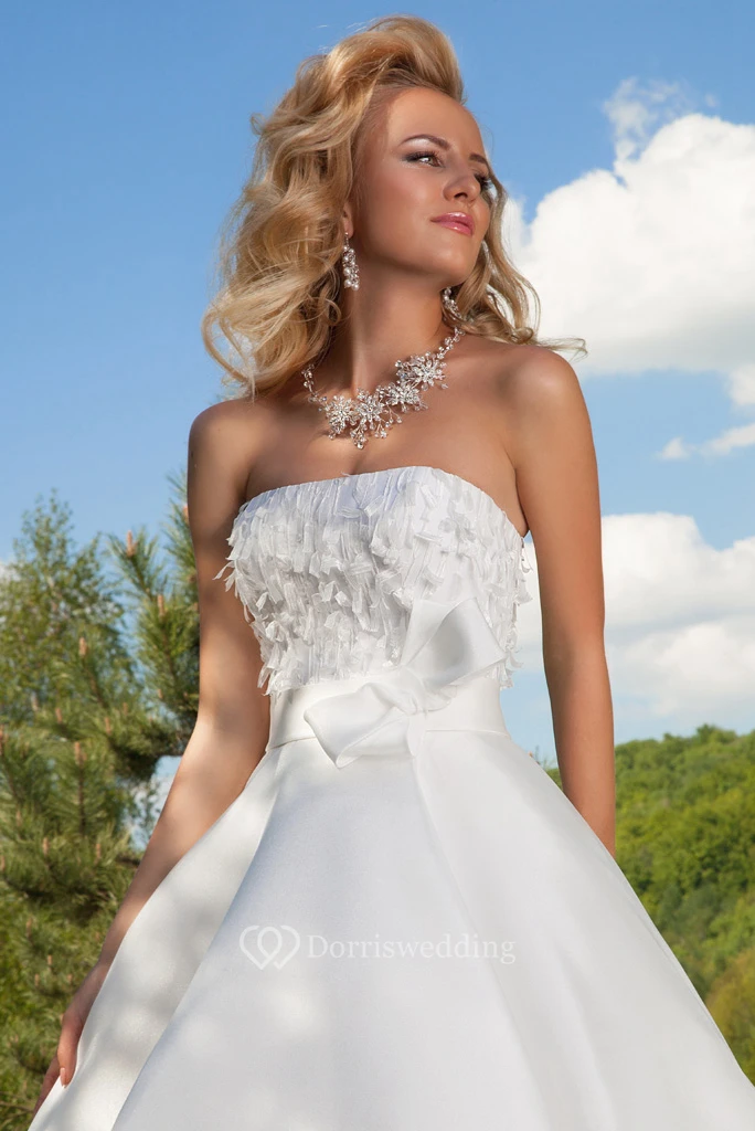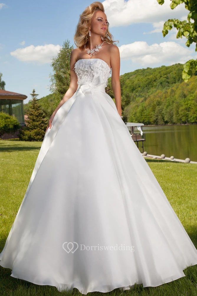 A-Line Ball-Gown Strapless Bowed Floor-Length Sleeveless Satin Wedding Dress With Lace-Up Back