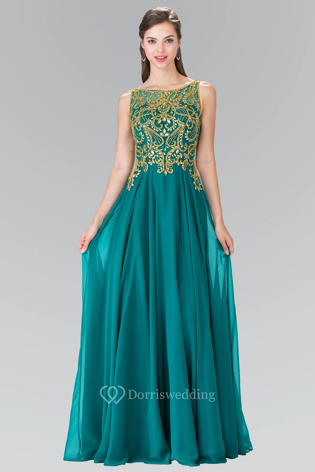 A-Line Bateau Sleeveless Chiffon Zipper Dress With Beading And Pleats