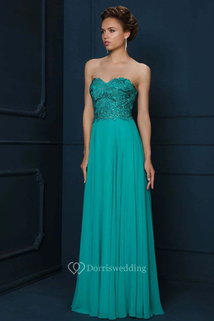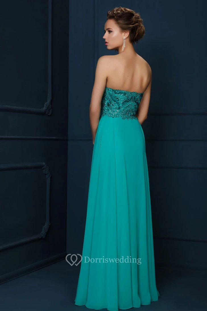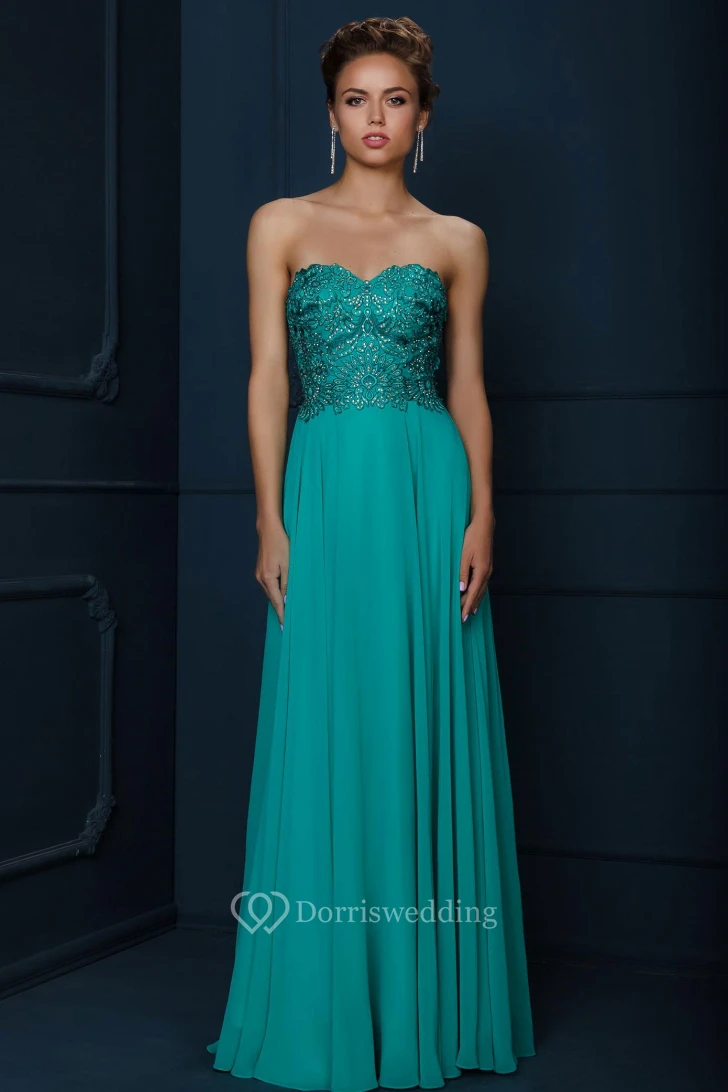 A-Line Beaded Maxi Sweetheart Sleeveless Chiffon Evening Dress With Embroidery
