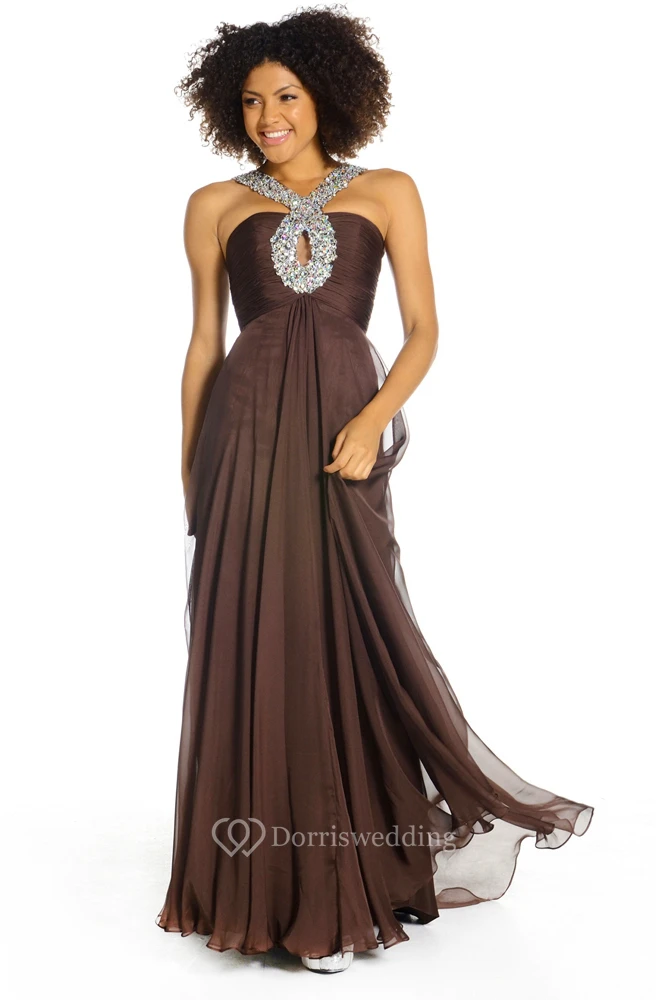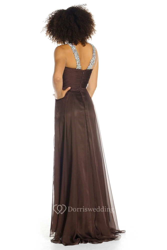 A-Line Beaded Sleeveless Long Chiffon Prom Dress With Zipper Back And Pleats