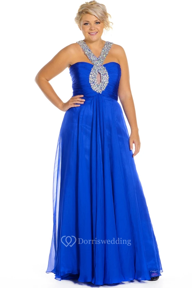 A-Line Beaded Sleeveless Long Chiffon Prom Dress With Zipper Back And Pleats
