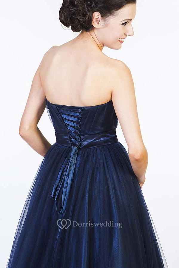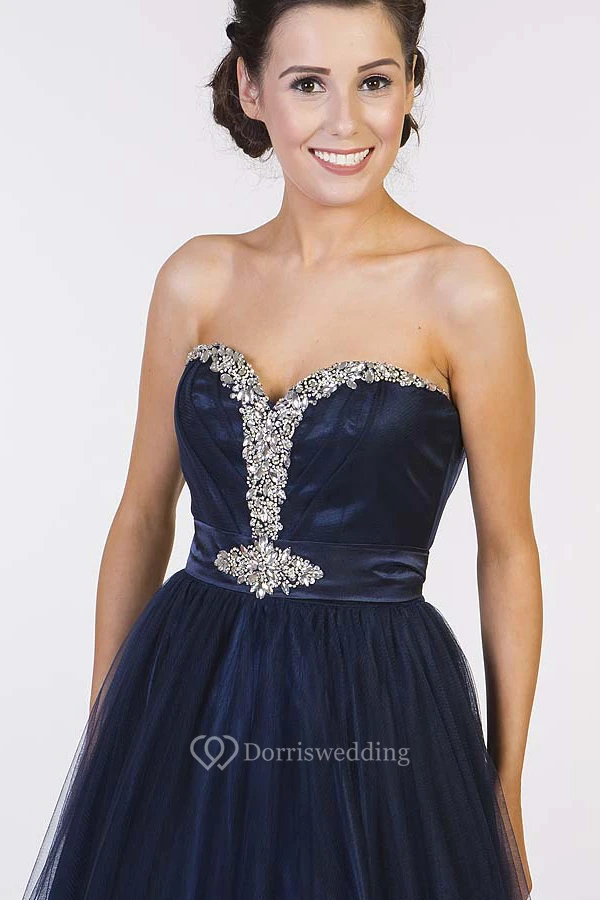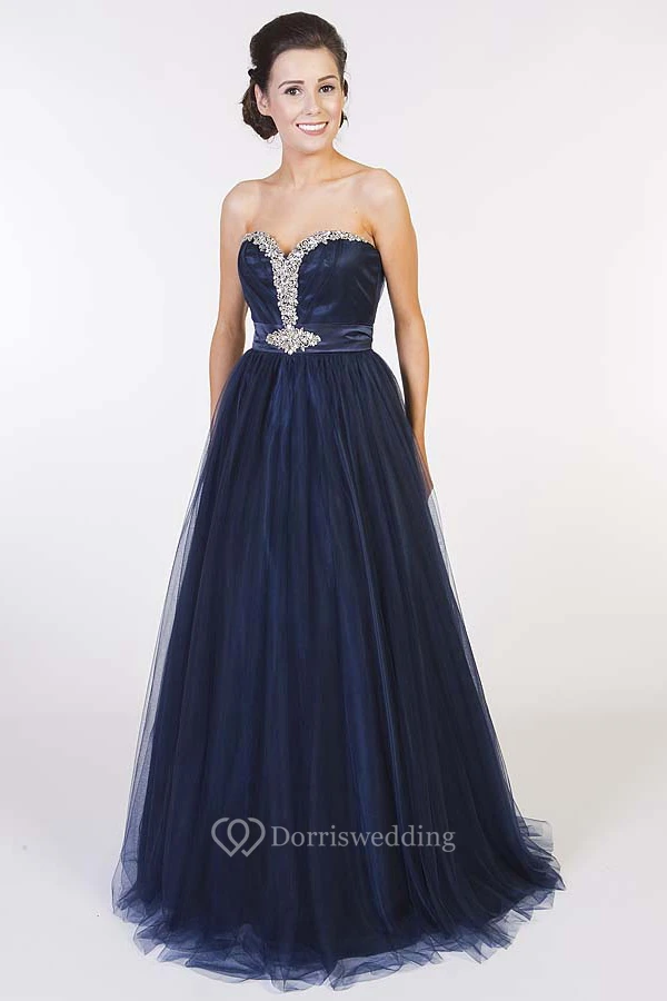 A-Line Beaded Sleeveless Sweetheart Tulle Prom Dress With Corset Back