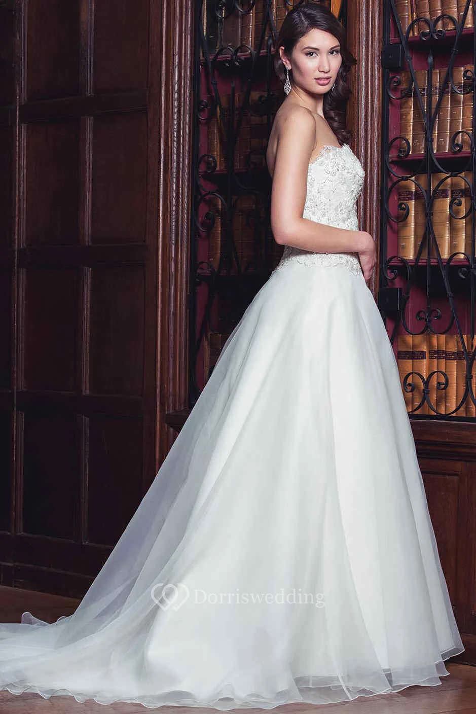 A-Line Beaded Strapless Maxi Sleeveless Wedding Dress With Appliques