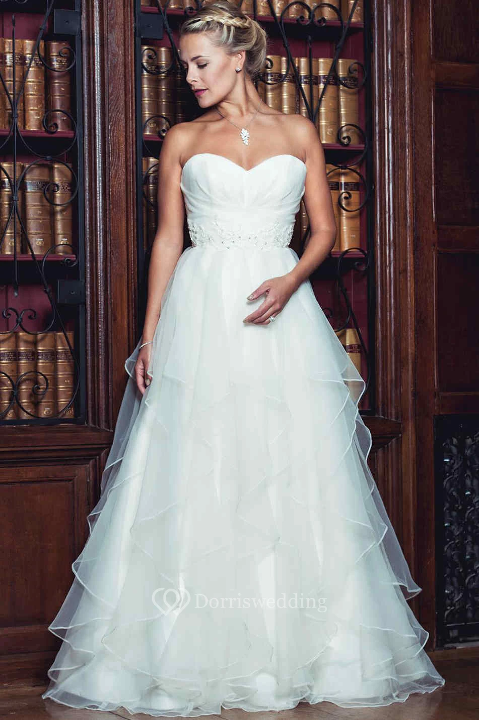 A-Line Beaded Sweetheart Organza Wedding Dress With Draping And Deep-V Back