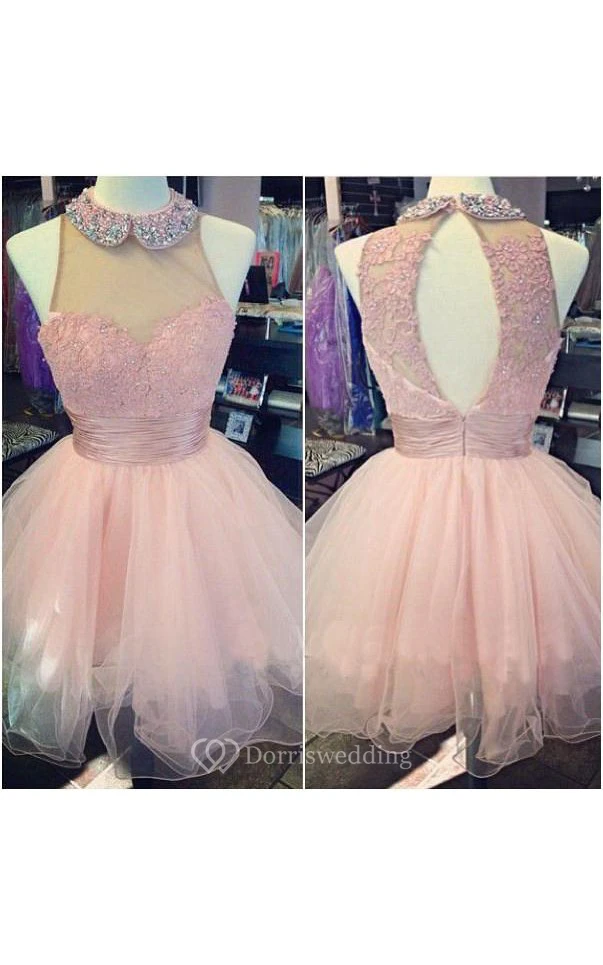 A-line Beading Neck Sweetheart Ruched Tulle Dress