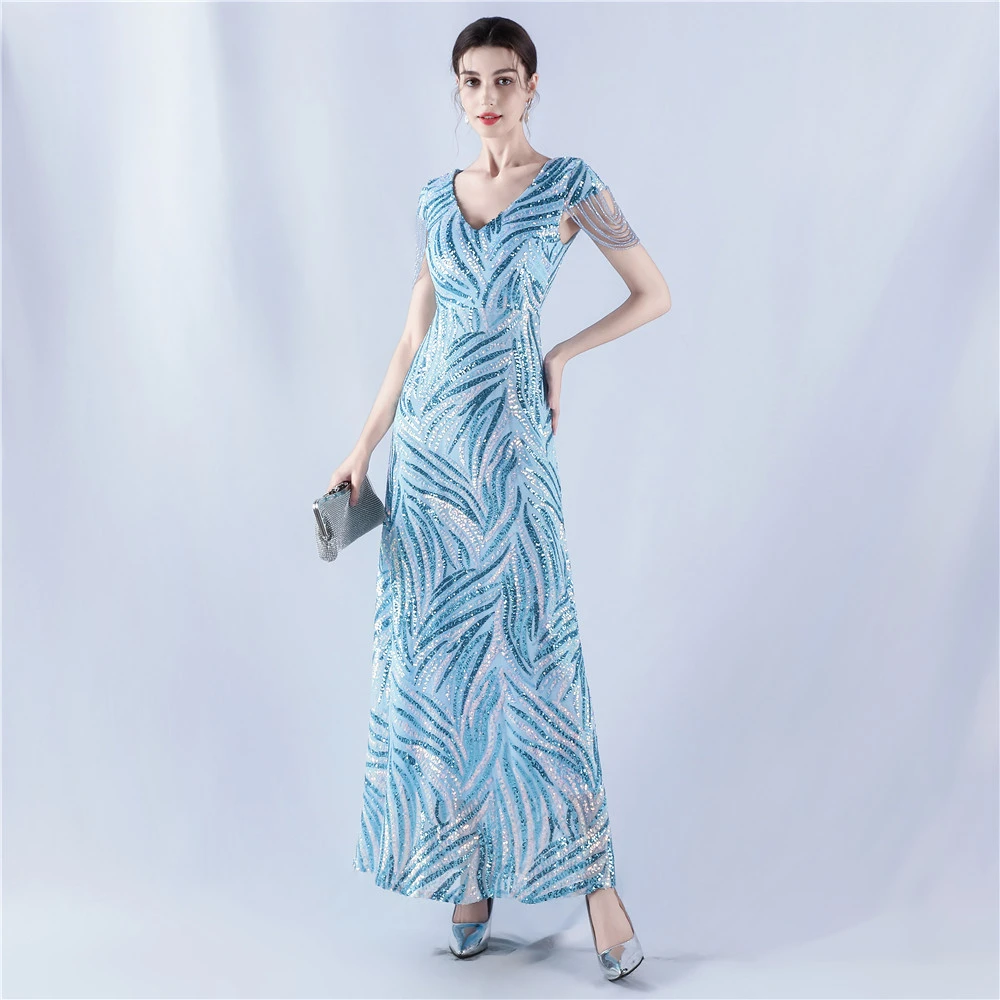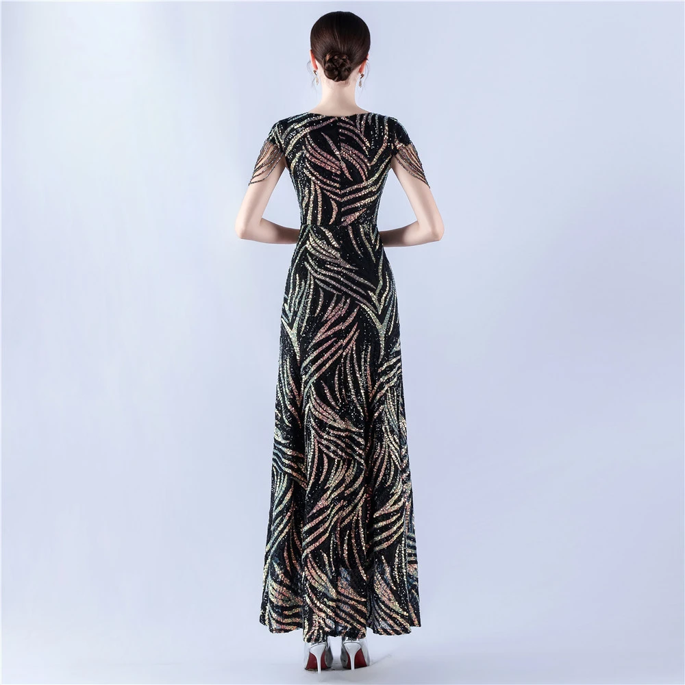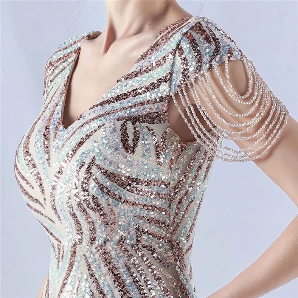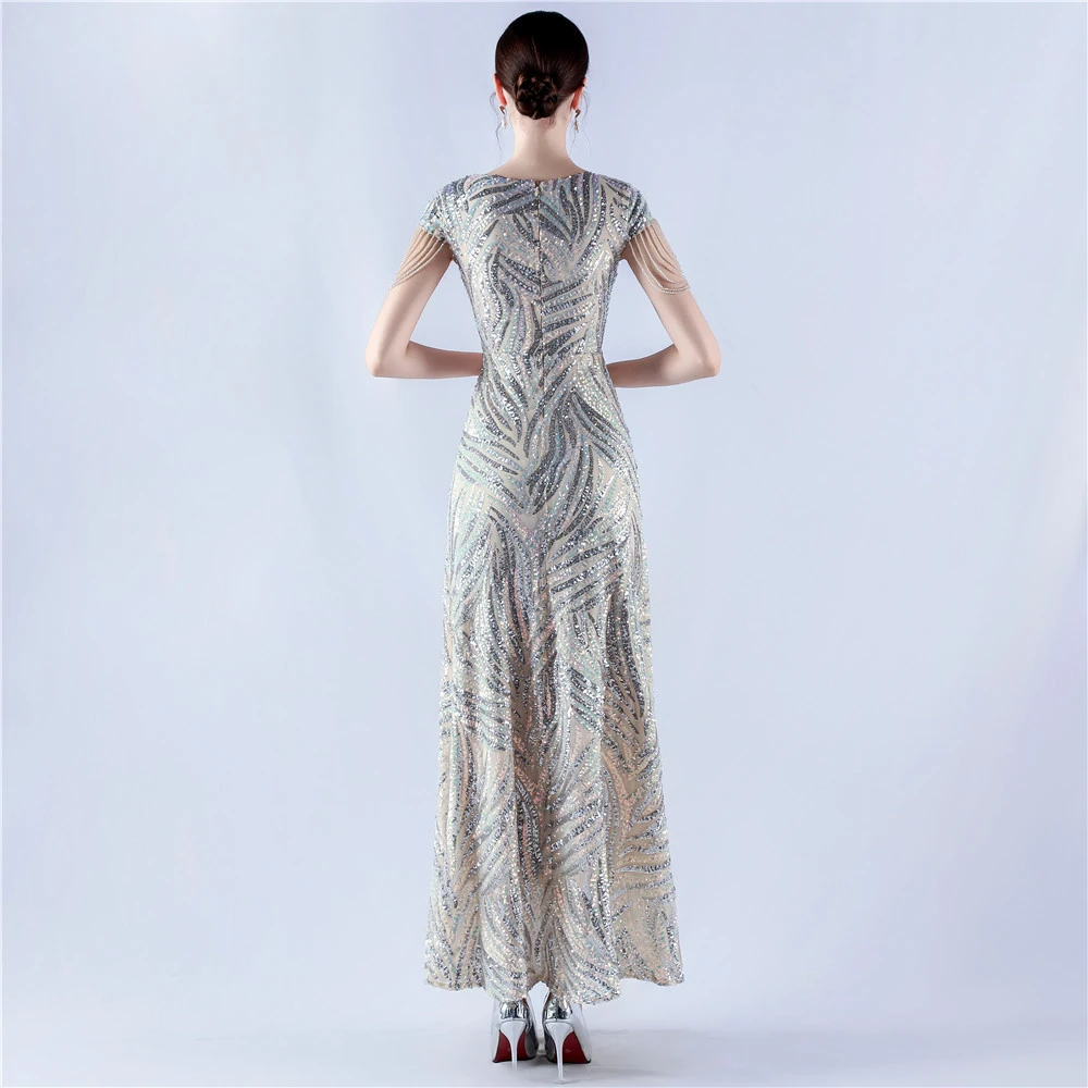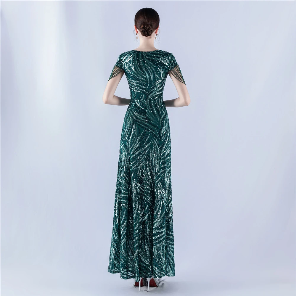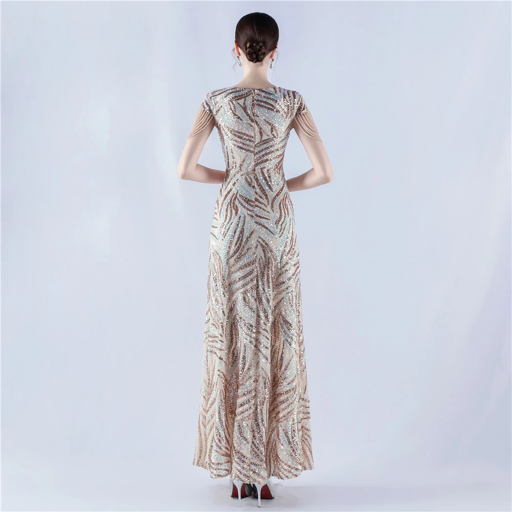 A-Line Big Swing Dress Skirt Encrypted Sequined Craft Beaded Evening Dress