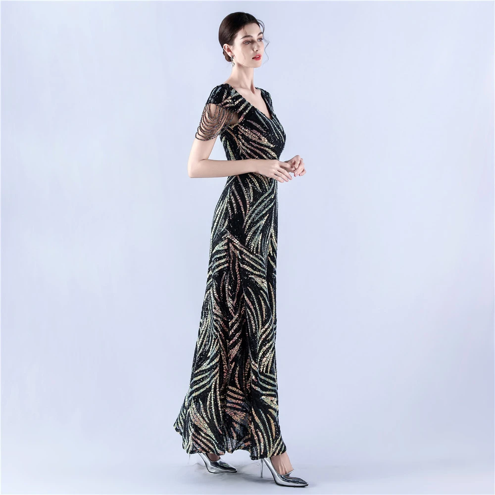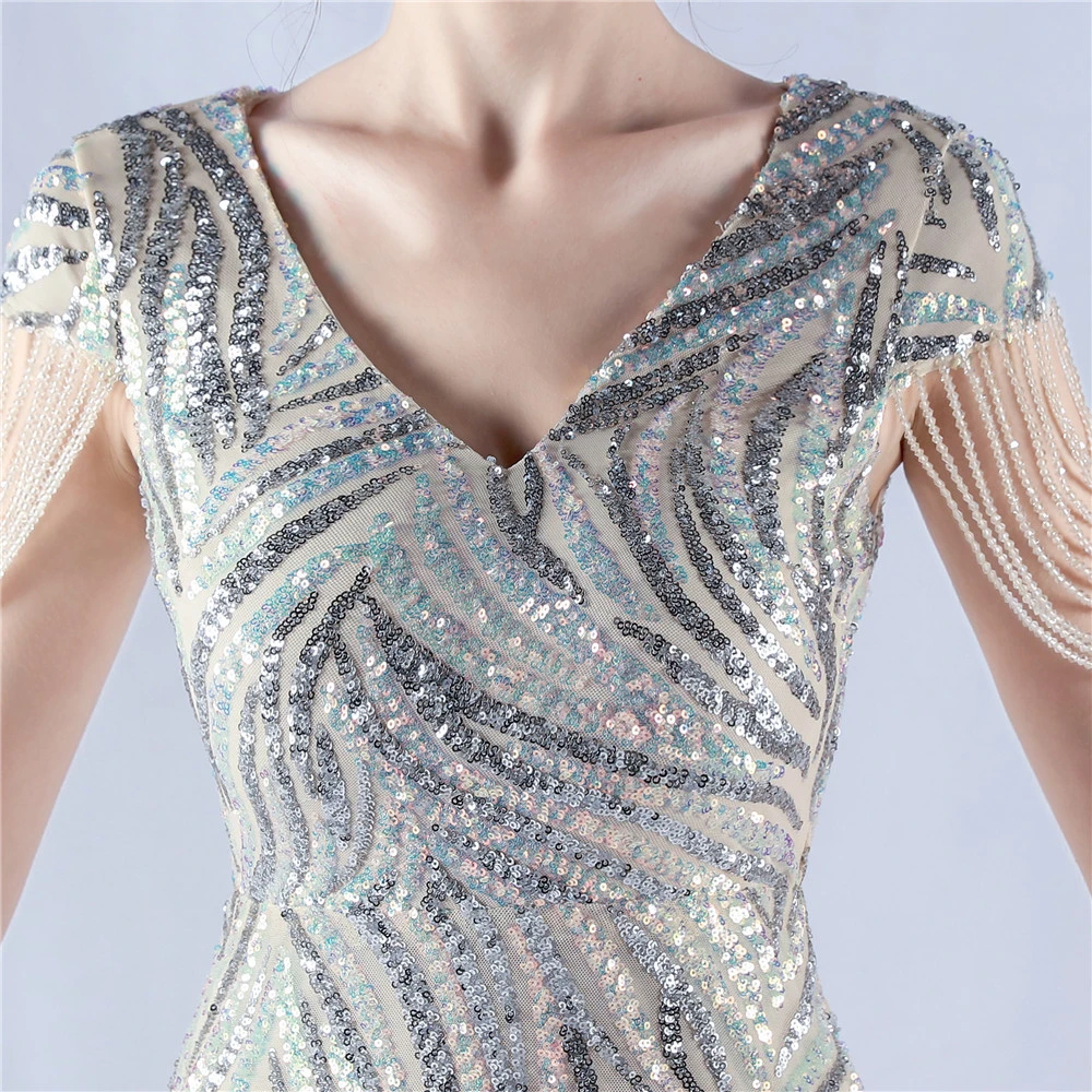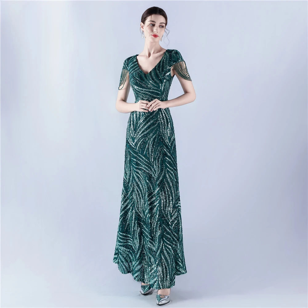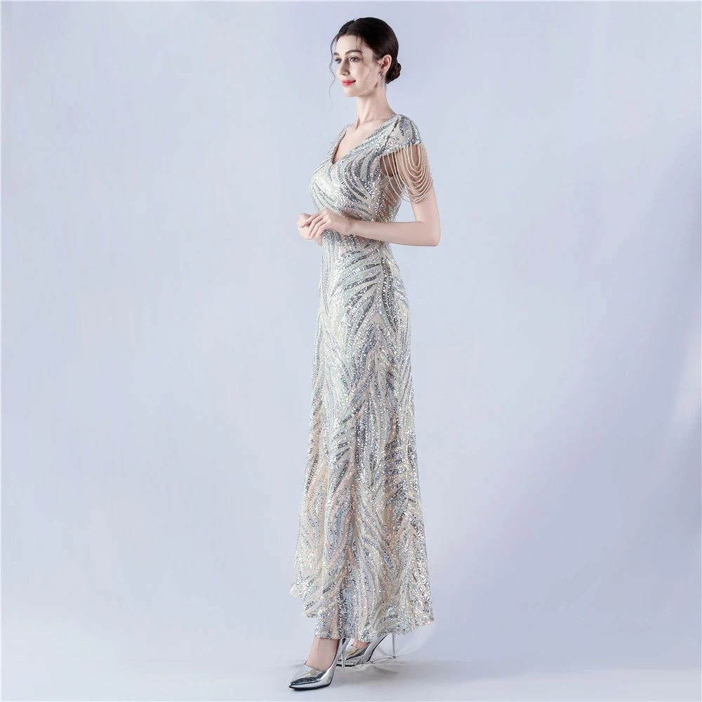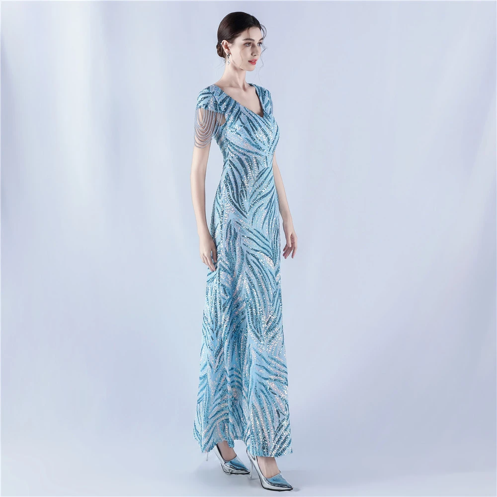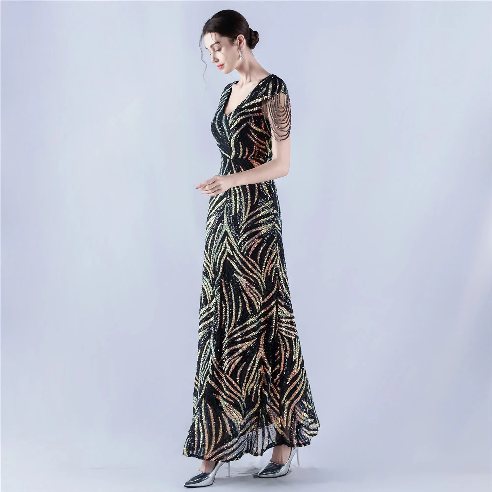 A-Line Big Swing Dress Skirt Encrypted Sequined Craft Beaded Evening Dress