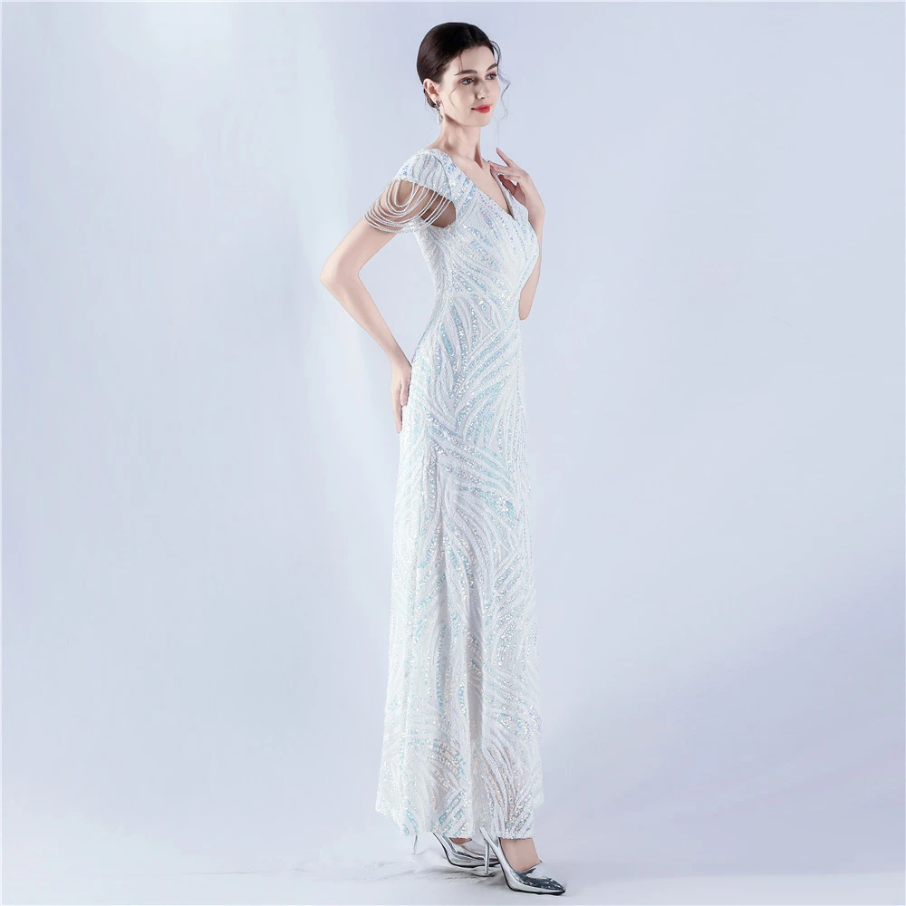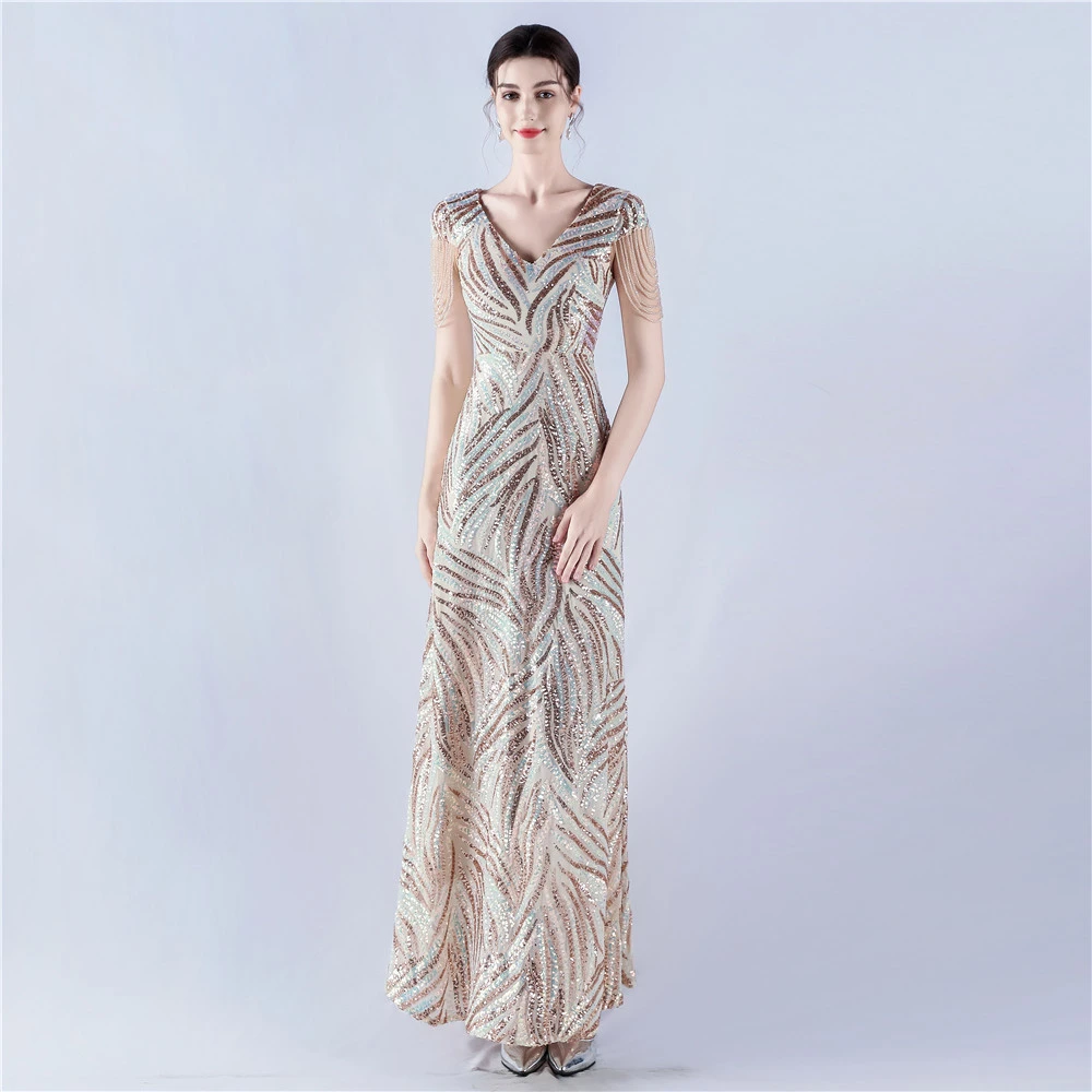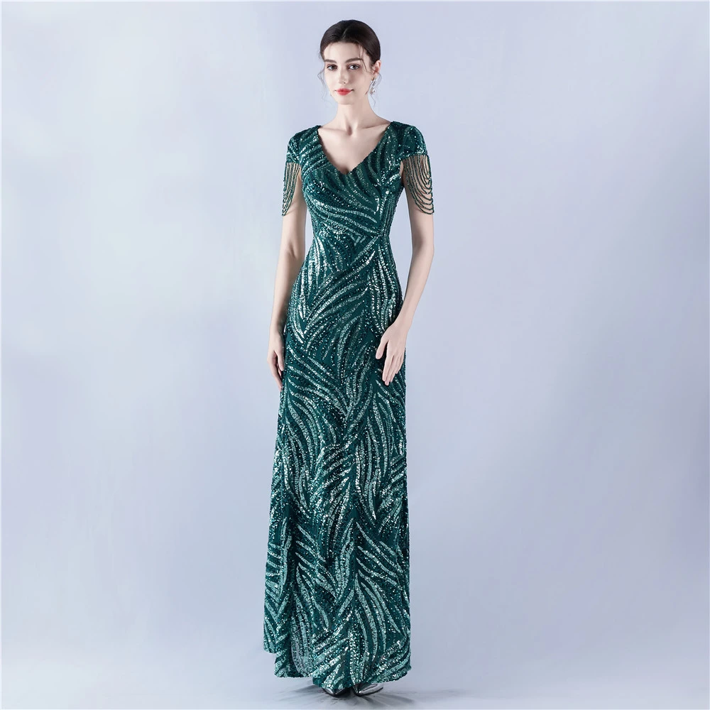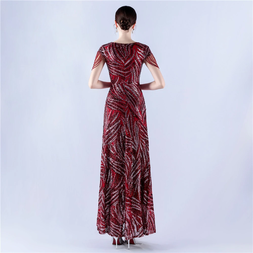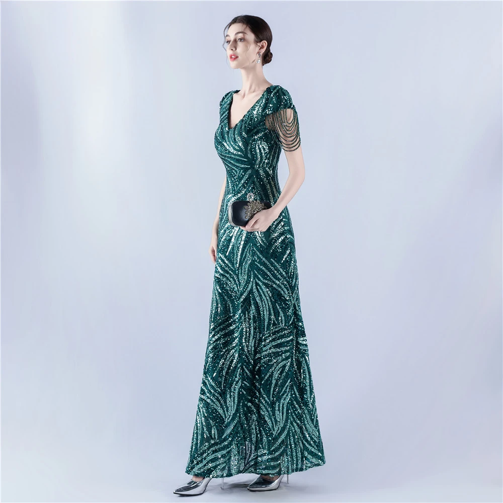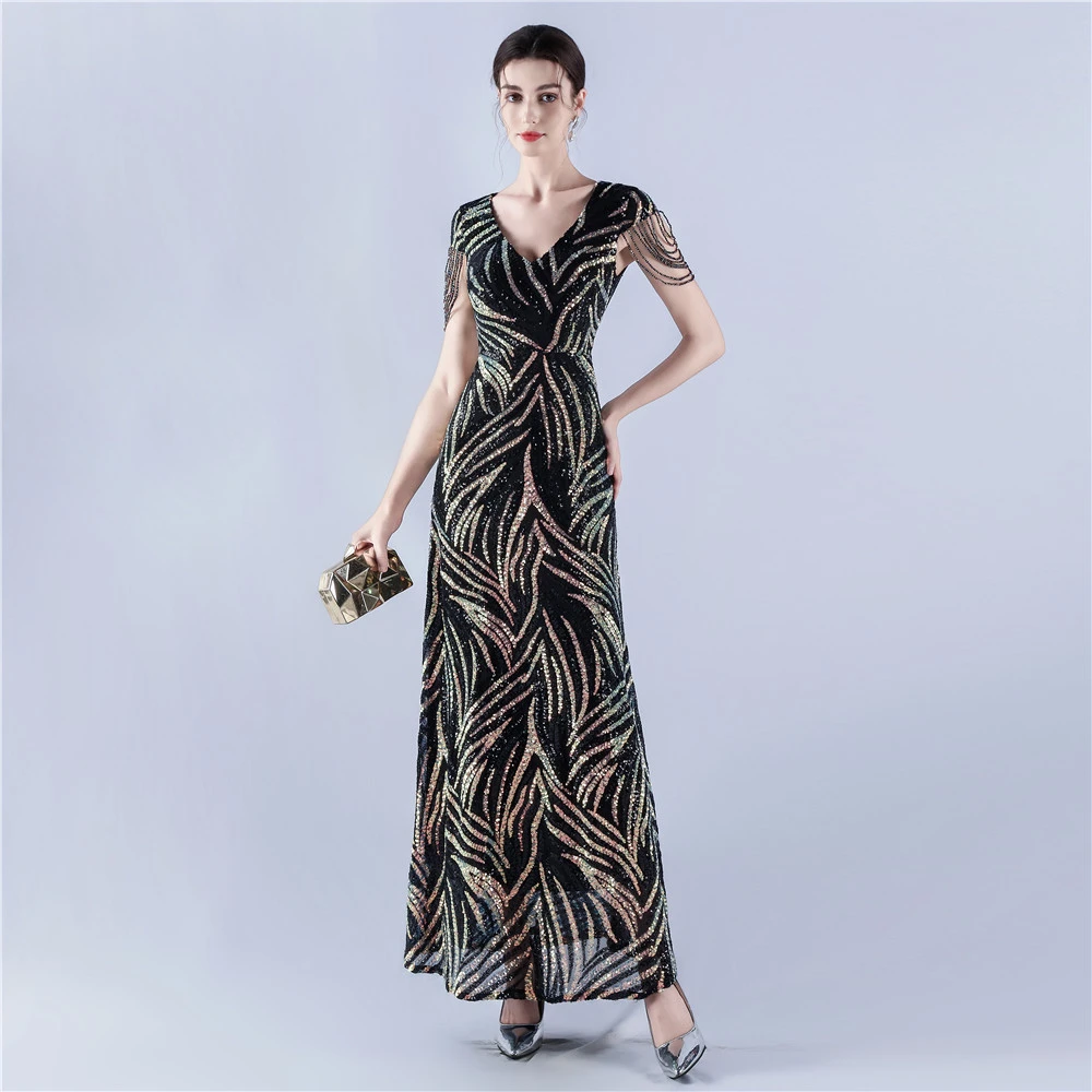 A-Line Big Swing Dress Skirt Encrypted Sequined Craft Beaded Evening Dress