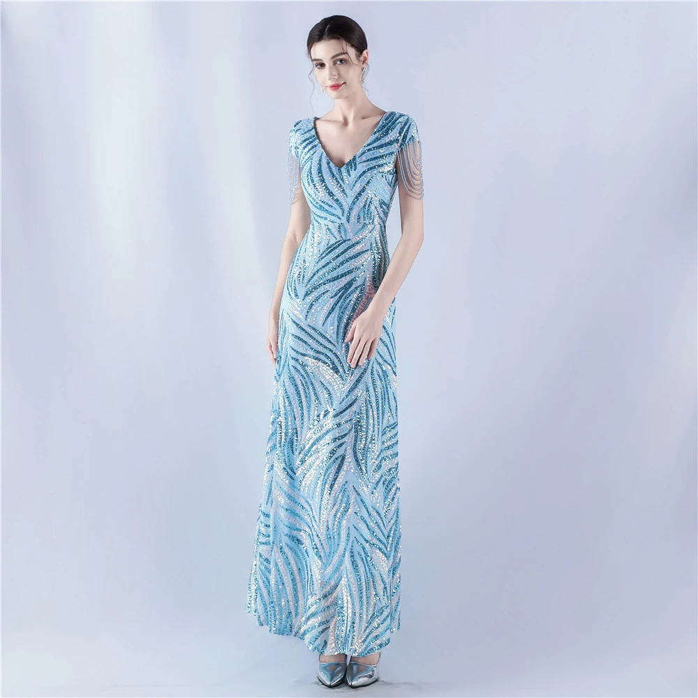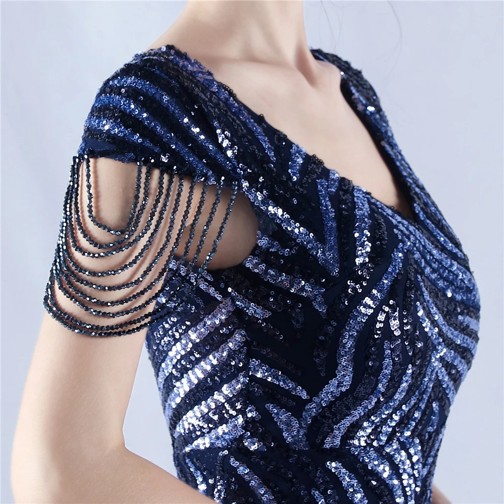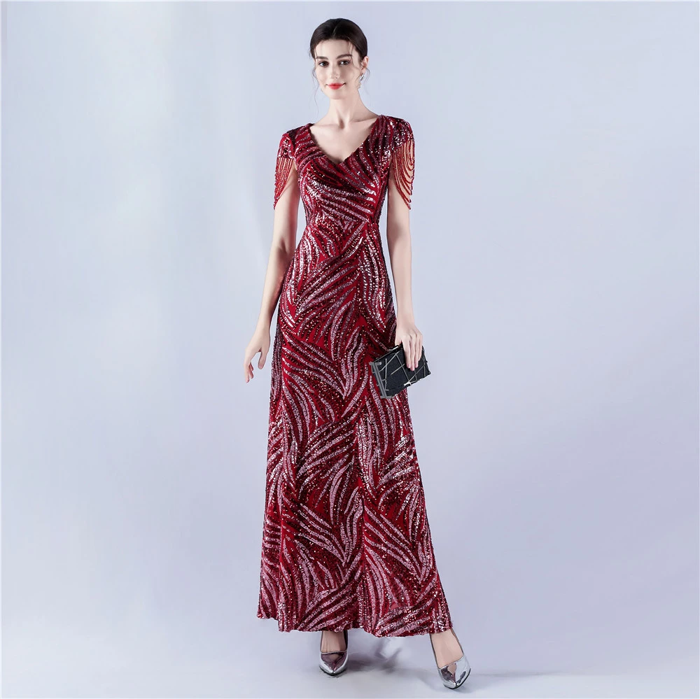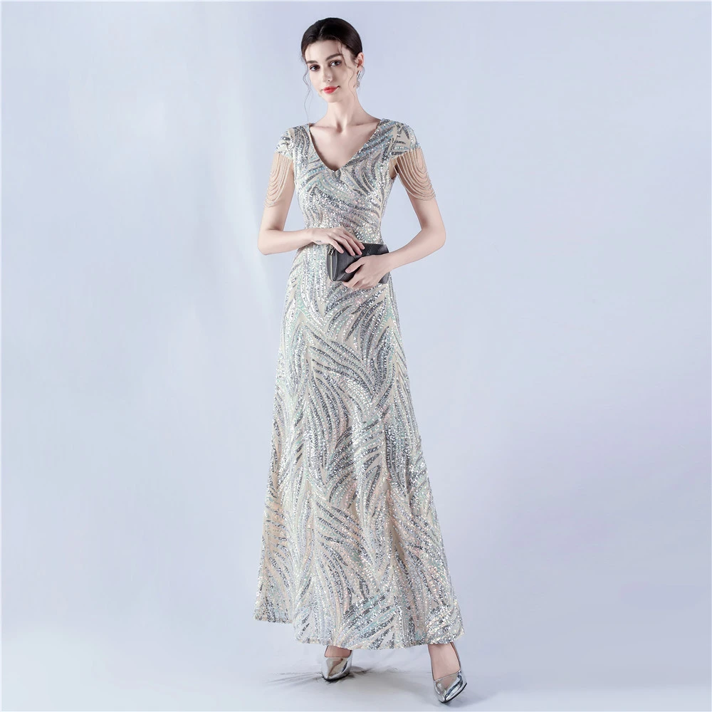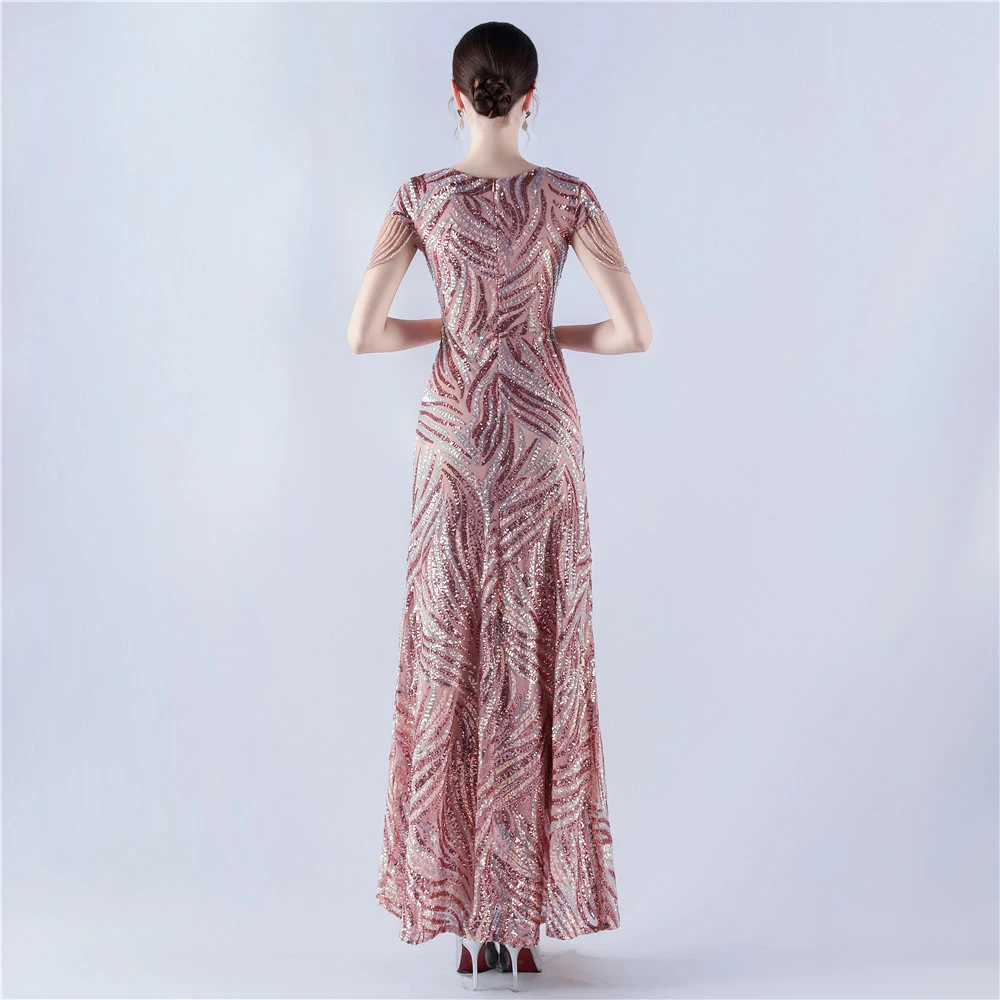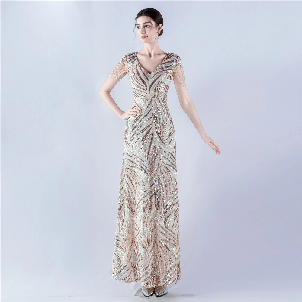 A-Line Big Swing Dress Skirt Encrypted Sequined Craft Beaded Evening Dress