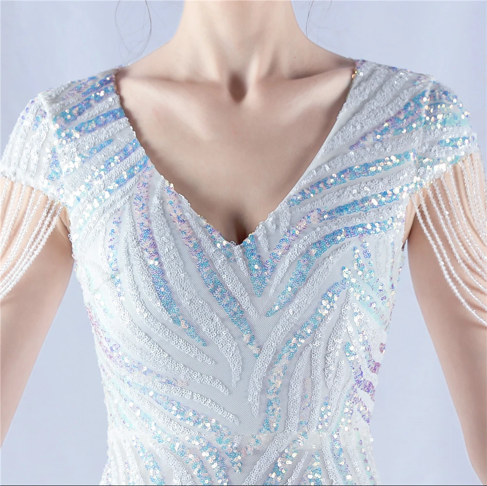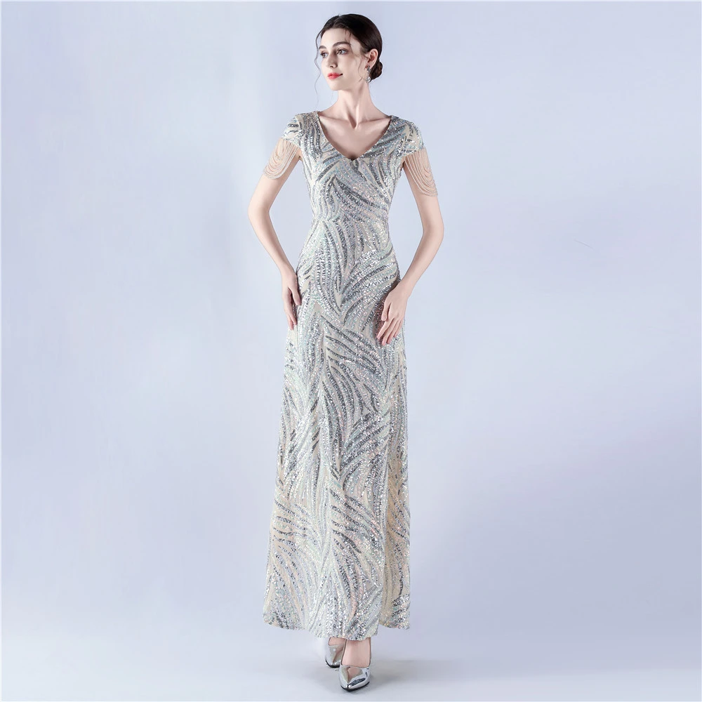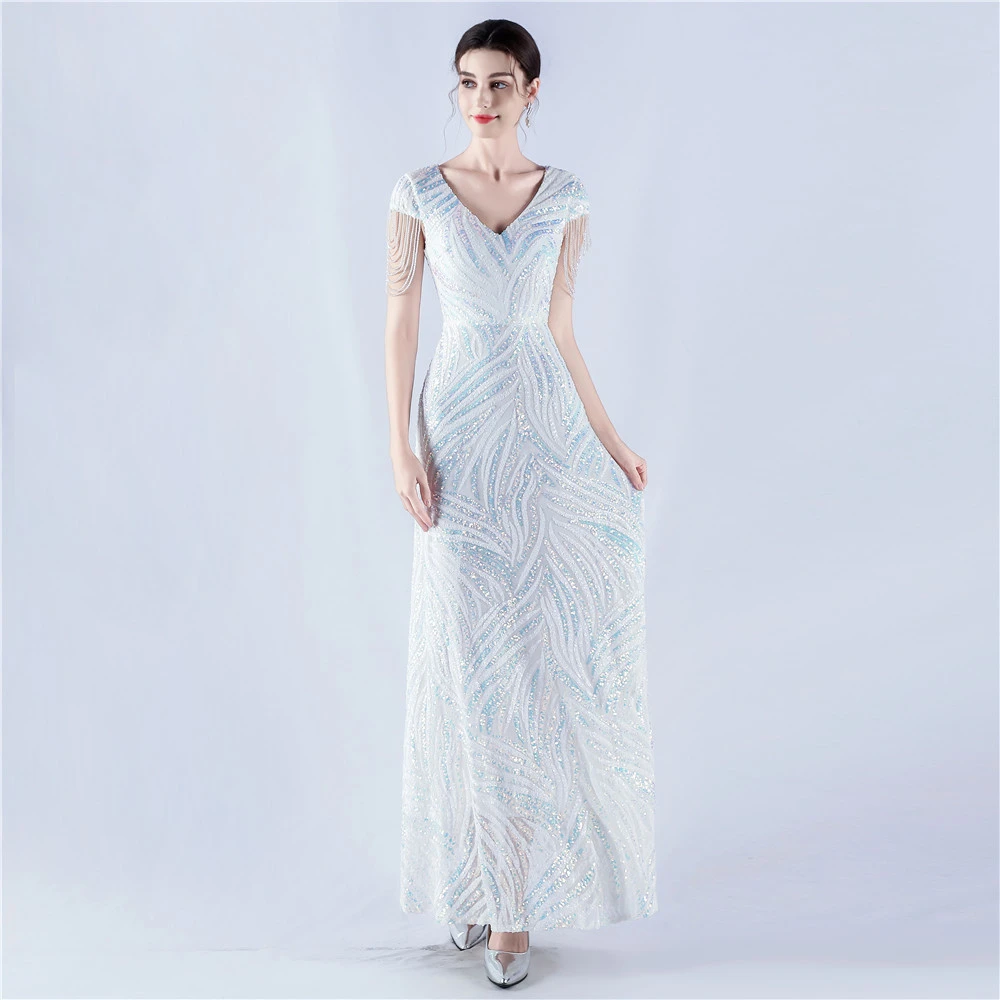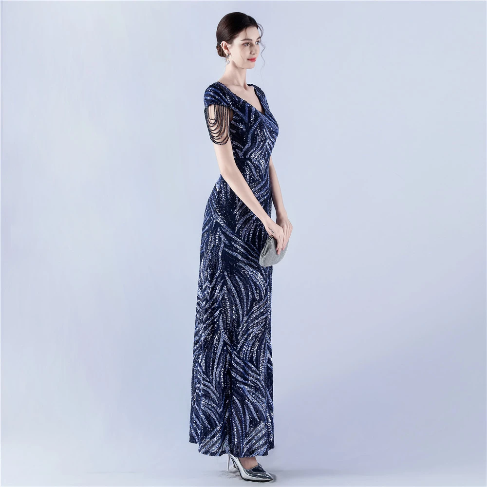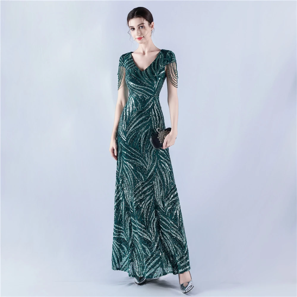 A-Line Big Swing Dress Skirt Encrypted Sequined Craft Beaded Evening Dress