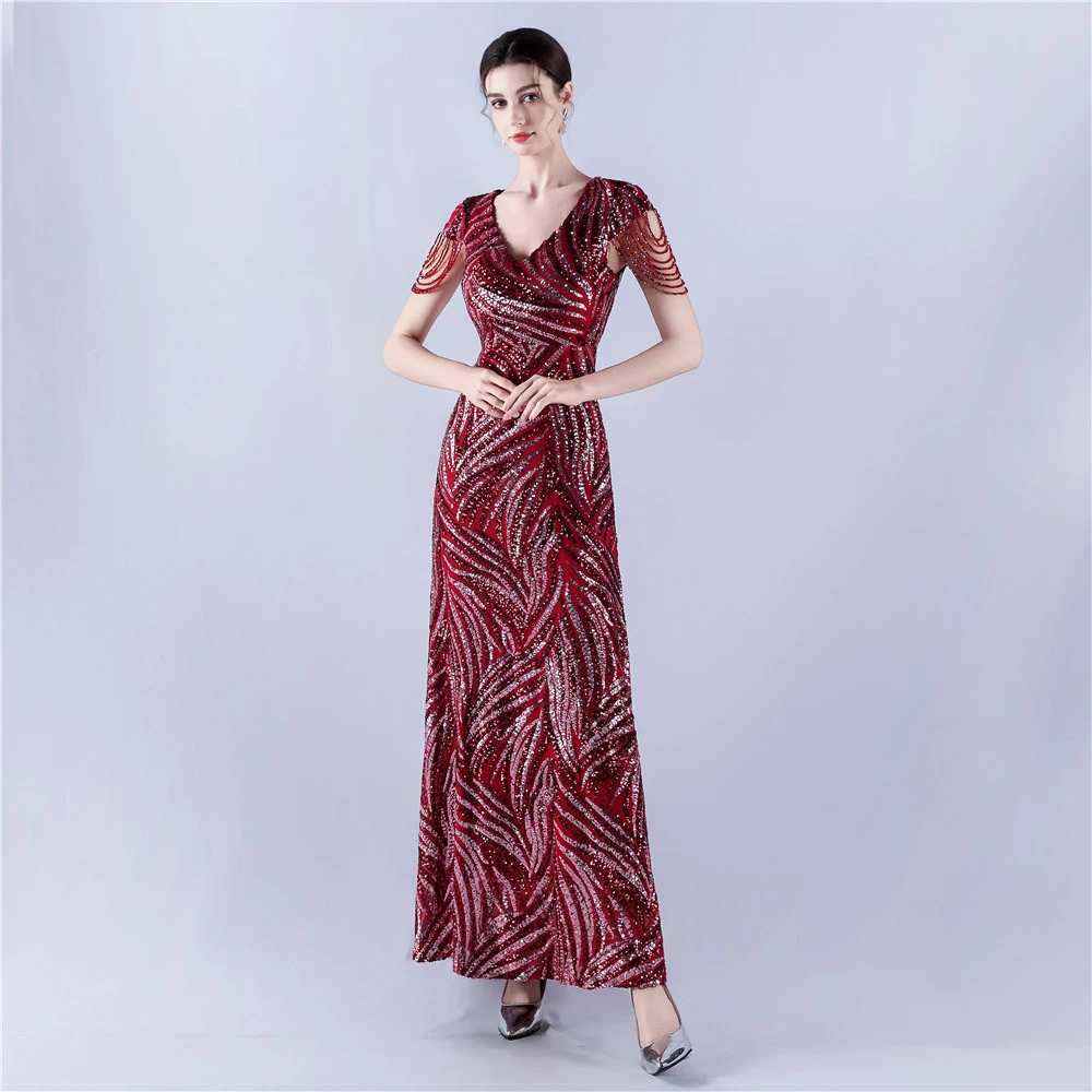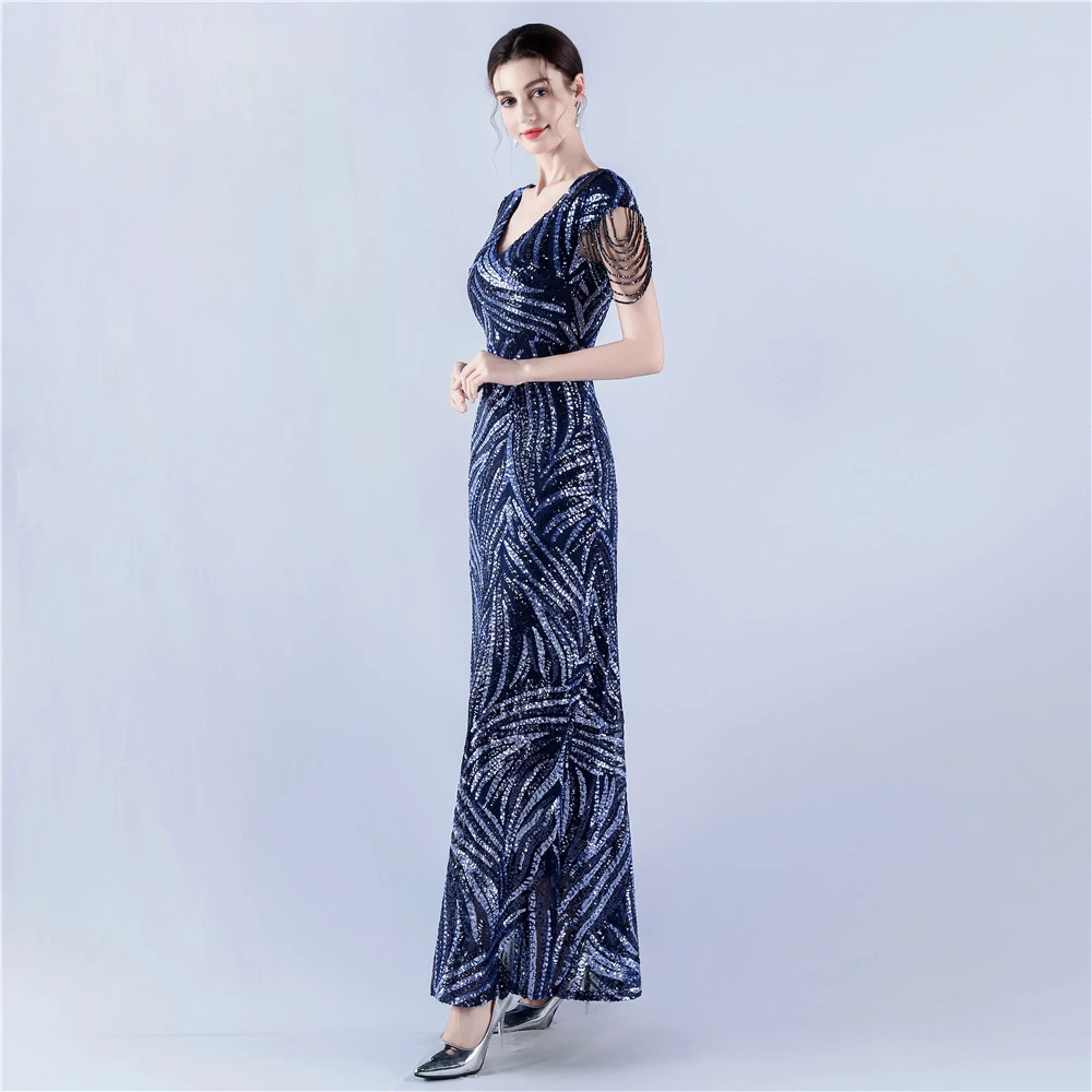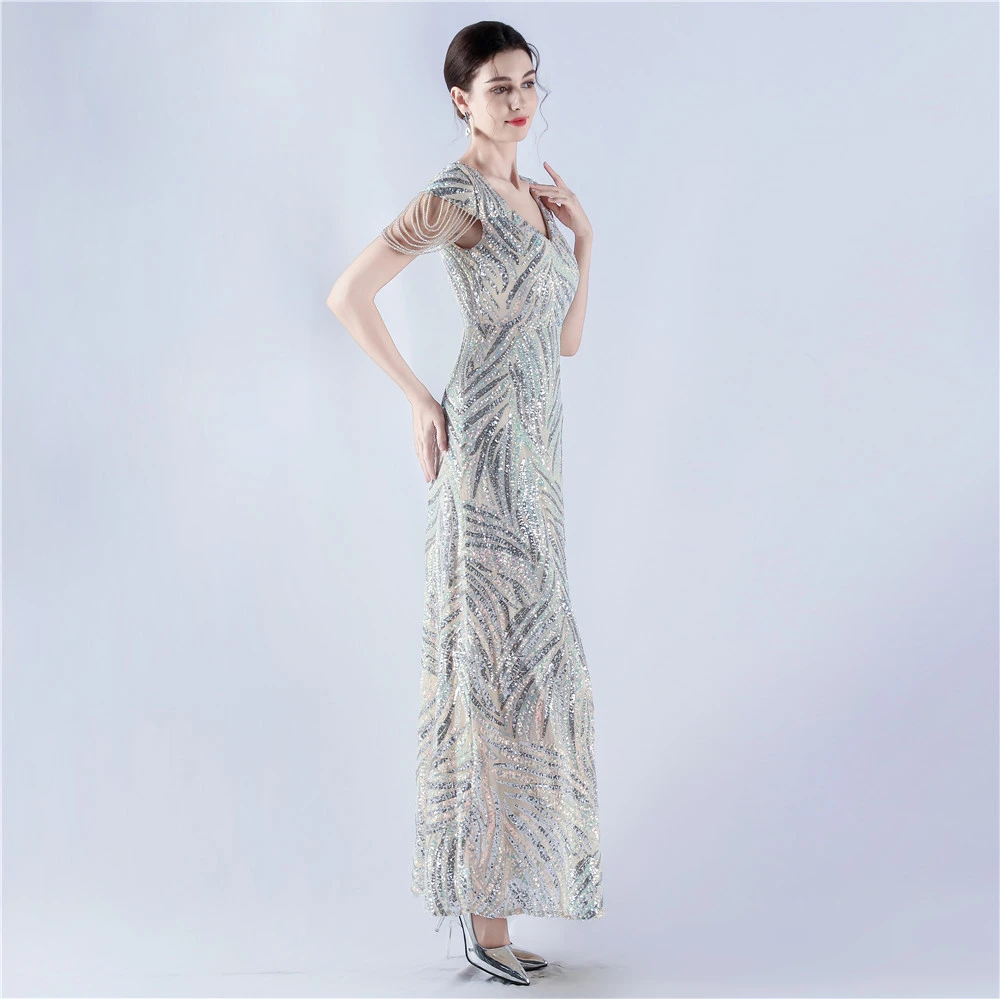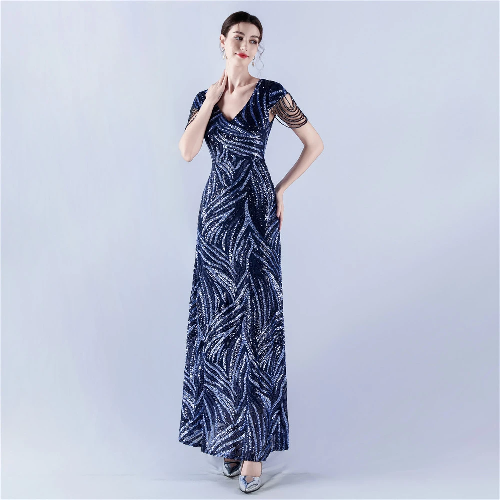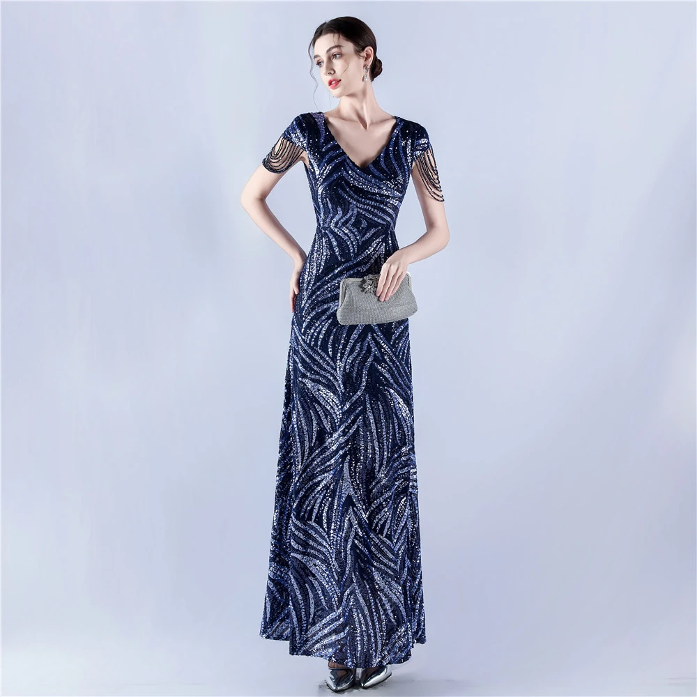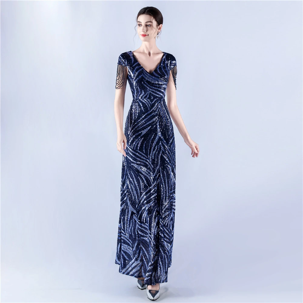 A-Line Big Swing Dress Skirt Encrypted Sequined Craft Beaded Evening Dress