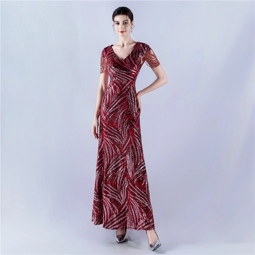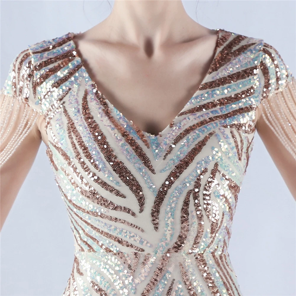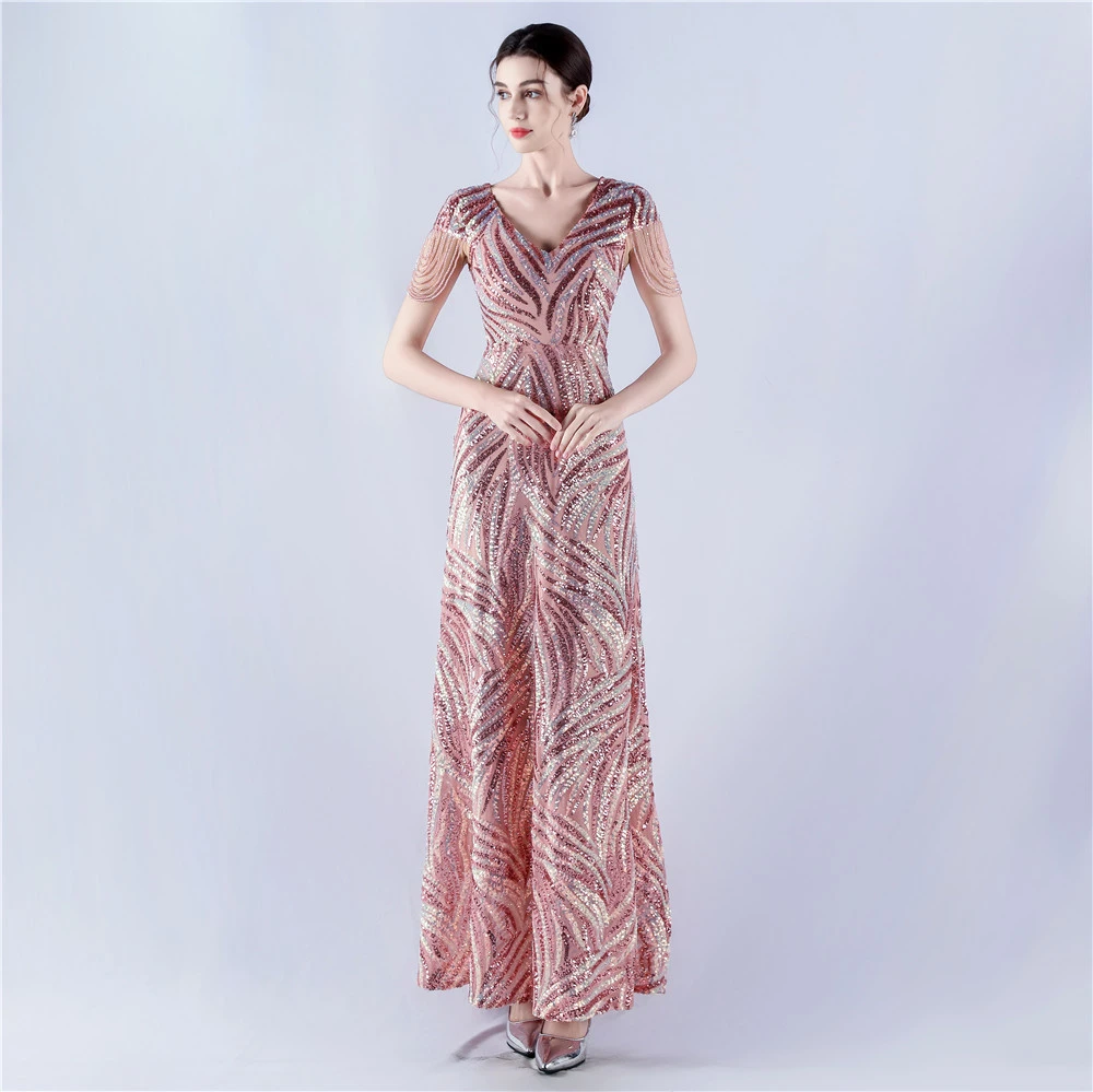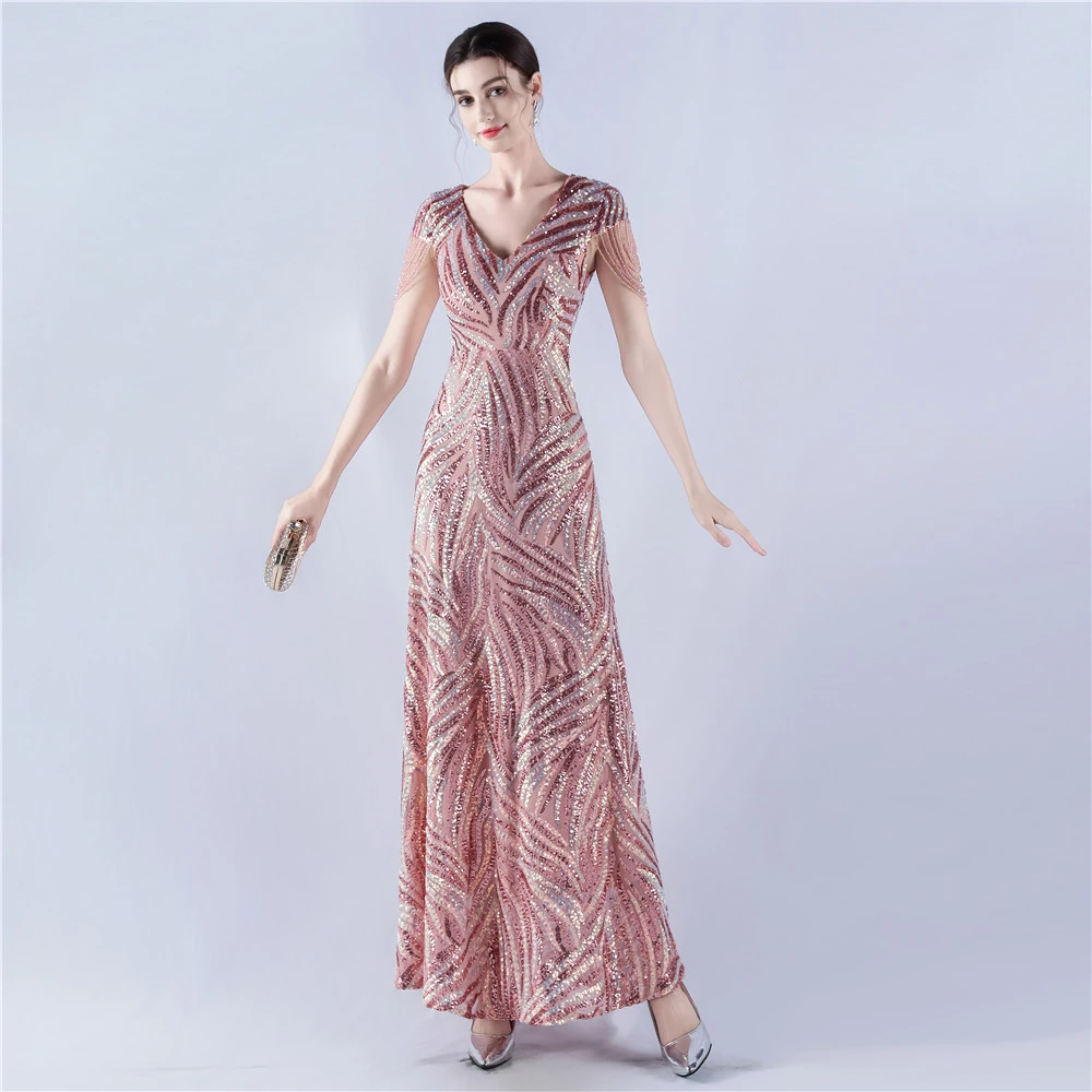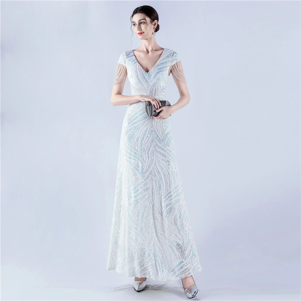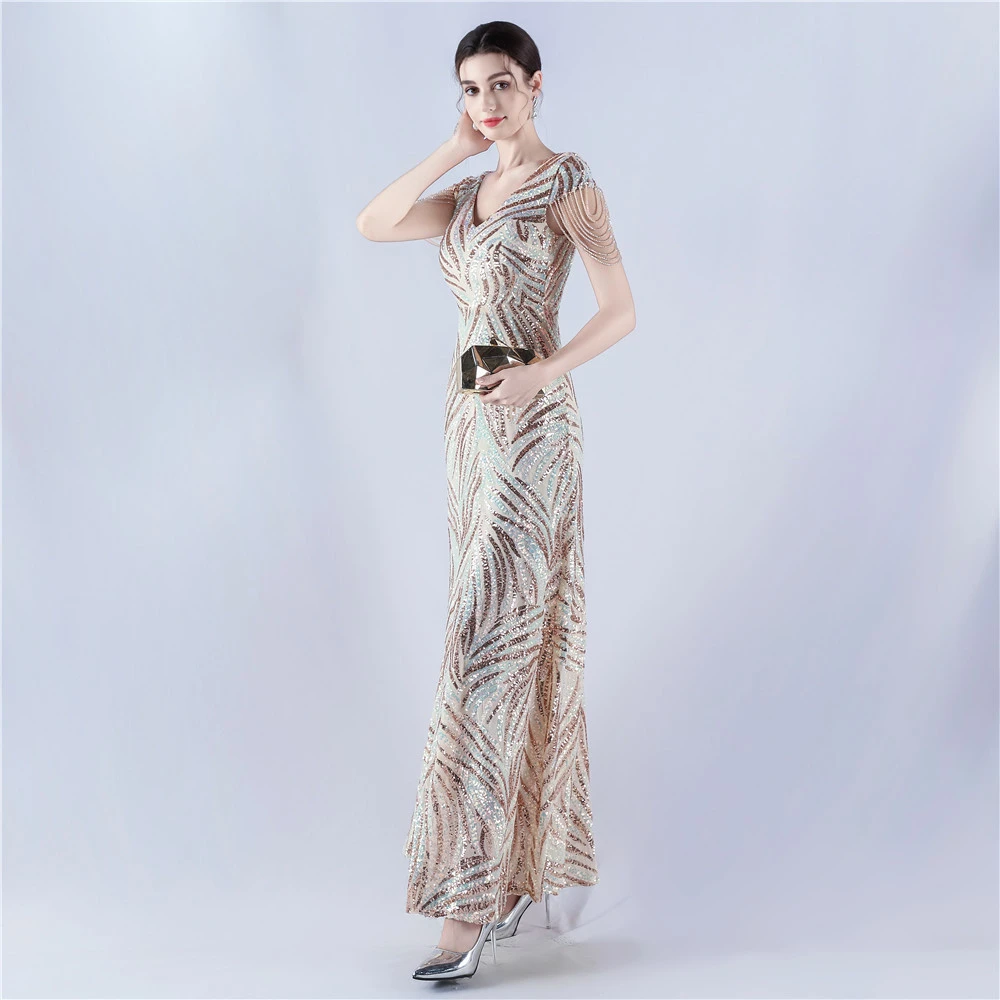 A-Line Big Swing Dress Skirt Encrypted Sequined Craft Beaded Evening Dress